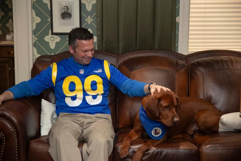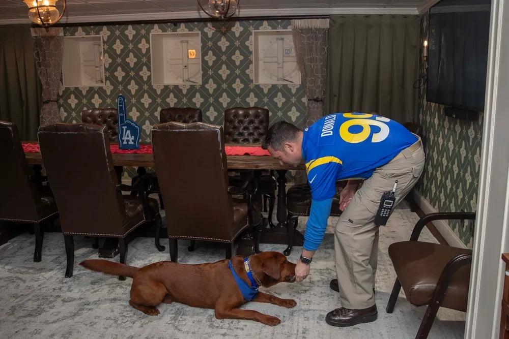 美国航空母舰的指挥官居然喜欢“撸狗”。 2025年11月30日,太平洋,美国海军尼米兹级航母亚伯拉罕·林肯号(CVN 72)指挥官丹尼尔·基勒尔上校与分配到亚伯拉罕·林肯号(CVN 72)的远征设施犬法瑟姆上校于一起坐着。亚伯拉罕·林肯号(CVN 72)作为亚伯拉罕·林肯航母打击群的旗舰,正在美国第三舰队作战区进行例行操作,展示了美国海军对自由开放的印太地区的长期承诺。