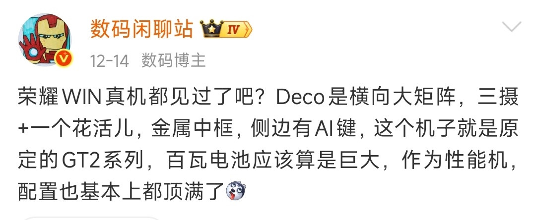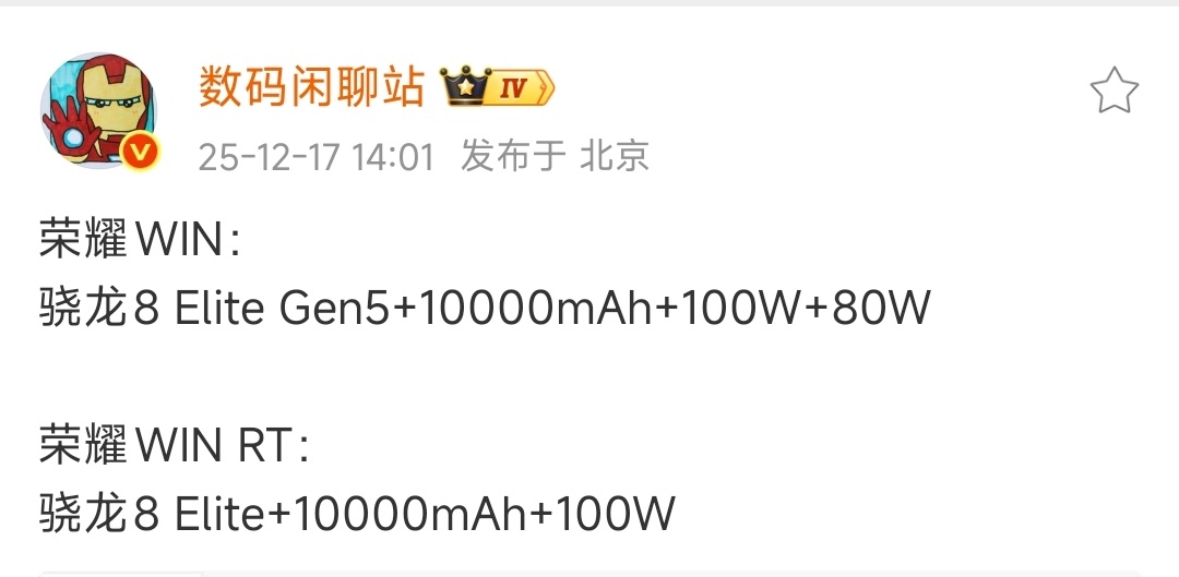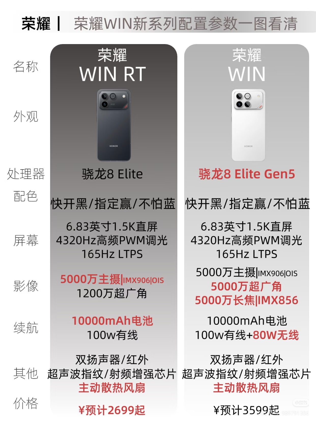 数码闲聊站 荣耀WIN系列核心配置!荣耀WIN 骁龙8Gen5,10000mAh+100w有线+80w无线!荣耀WIN RT 骁龙8至尊版,10000mAh+100w有线!全系3D超声波,全系荣耀鸿燕通信系统,全系IP68/69/69K,全系AI环绕低音炮,期待一下!
