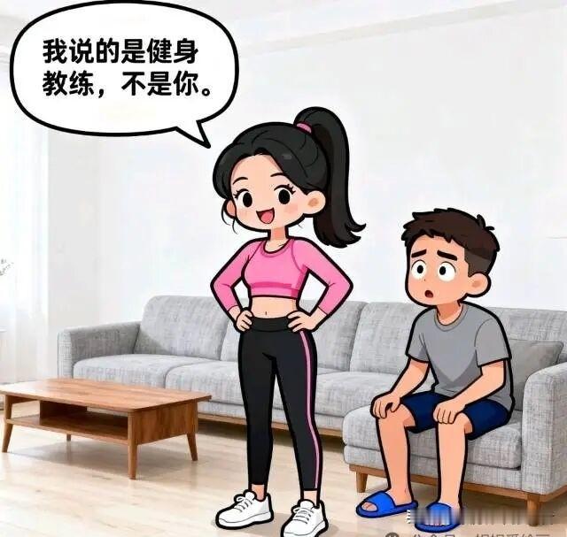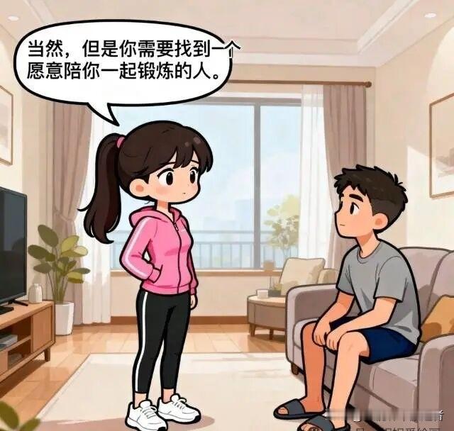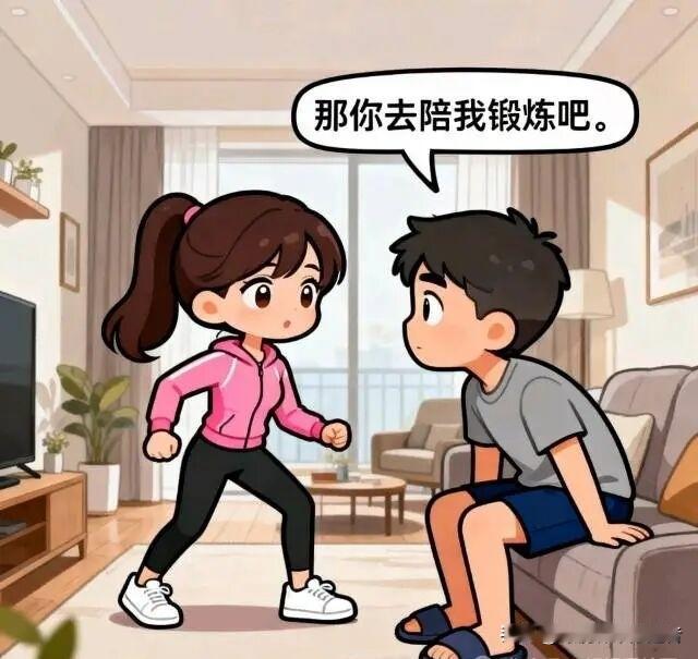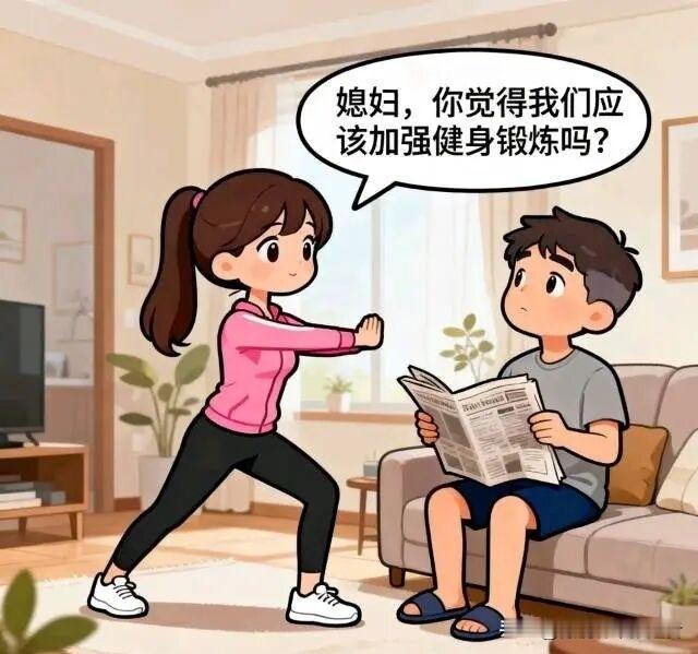 趣味漫画:老婆在锻炼老公在看报纸老公问:媳妇,你觉得我们应该加强健身锻炼吗?媳妇:当然,但是你需要找到一个愿意陪你一起锻炼的人。趣味小漫画