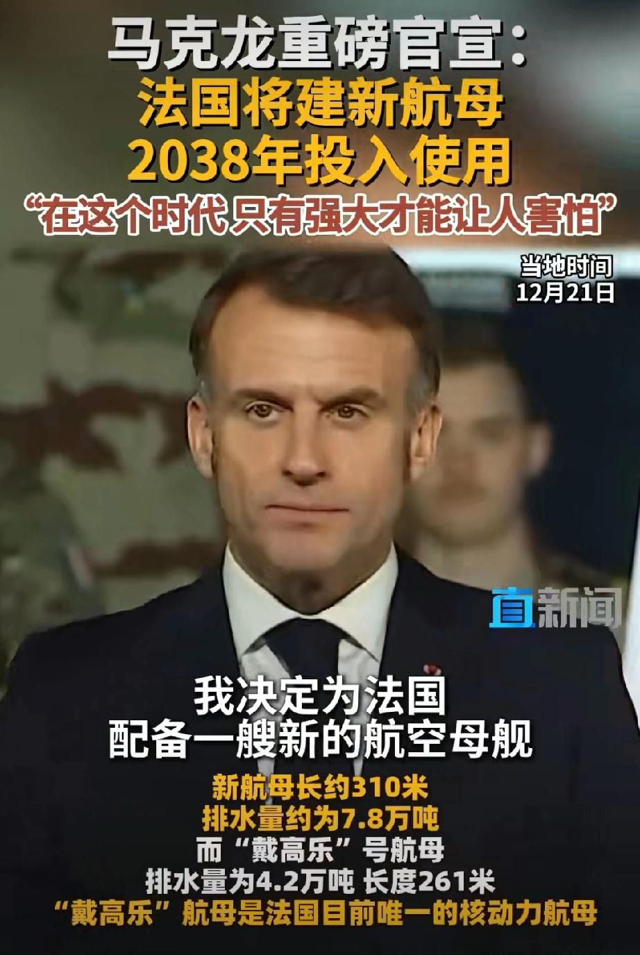 马克龙在阿联酋突然官宣大动作,欧洲最大核动力航母PANG正式开建,2038年接替“戴高乐”号✨! 新航母排水量飙到7.5-8万吨,比老舰大近一倍,配电磁弹射和功率暴涨46%的新核反应堆,战力直接翻倍。 官方预算102.5亿欧元,可分析预估最终要花250亿欧元。 要知道“戴高乐”号毛病不断、航速拉胯,如今法国硬砸巨款,一边躲着北约搞欧洲防务自主,一边靠海湾合作拓展影响力。 小马哥这波战略野心拉满,就是不知道钱包能不能扛住[狗头] 军事
