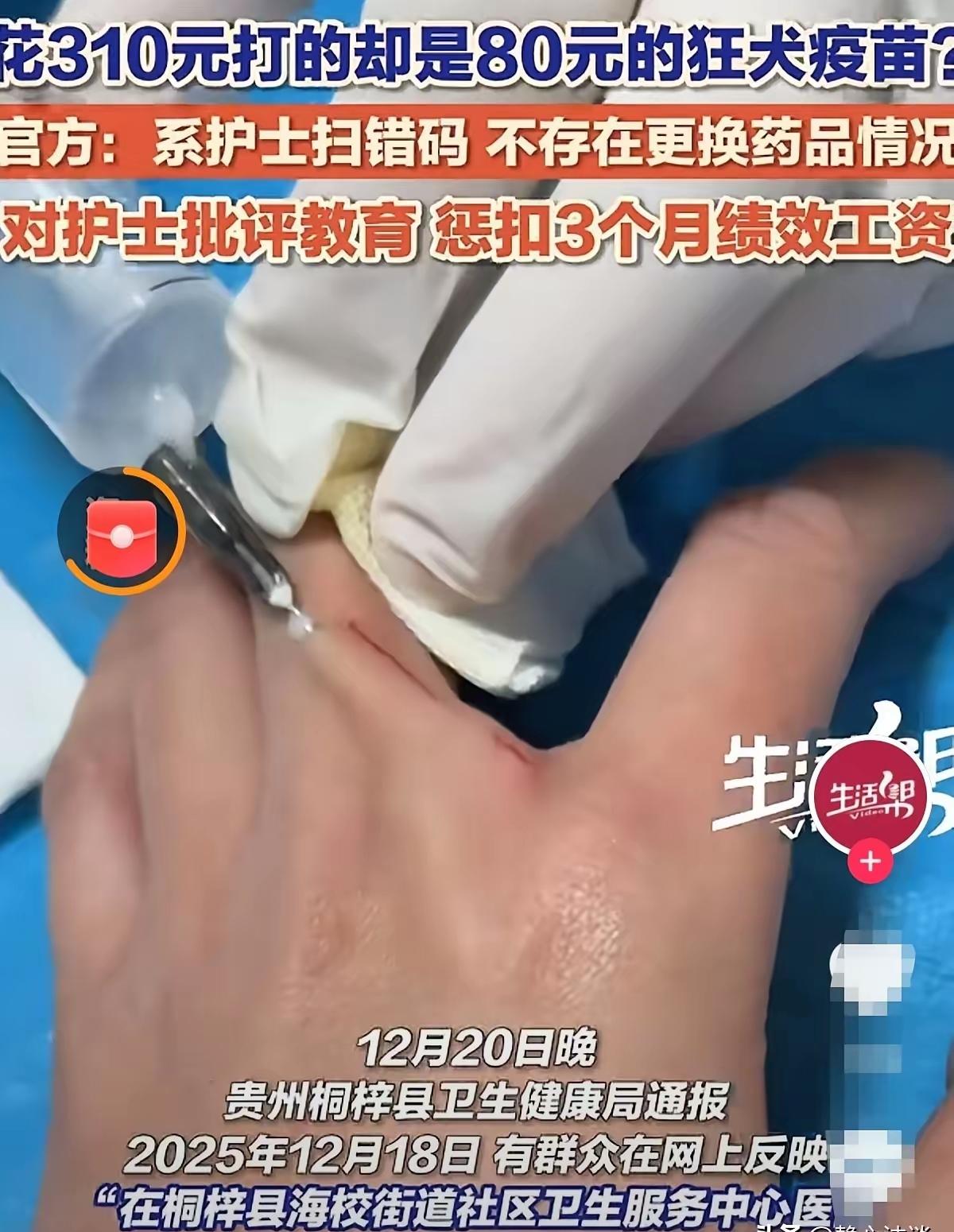 贵州男童被狗咬伤接种疫苗,310元针剂竟录成80元! 这事儿换谁谁不炸毛!贵州陈女士儿子被狗咬,全家急得团团转,特意选310元副作用小的疫苗,就盼着孩子少受罪。结果接种单上赫然写着80元的低价款,这换哪个家长能淡定? 陈女士当场找护士对峙,对方支支吾吾,查了半天才说是录入错误,疫苗没换。可这话谁信啊?要查空药盒,说医疗垃圾要统一处理;要看出库记录,又说没权限。遮遮掩掩的态度,直接把家长的焦虑值拉满,报警维权是必然的! 后续调查证实是护士操作失误,相关人员也被追责。但这事根本不是一句“失误”就能翻篇的,疫苗关乎生命,接种流程的每一环都容不得半点马虎,基层医疗的规范漏洞才是真凶! 换作是你,遇到这种事,能轻易相信“只是录入错误”的解释吗?