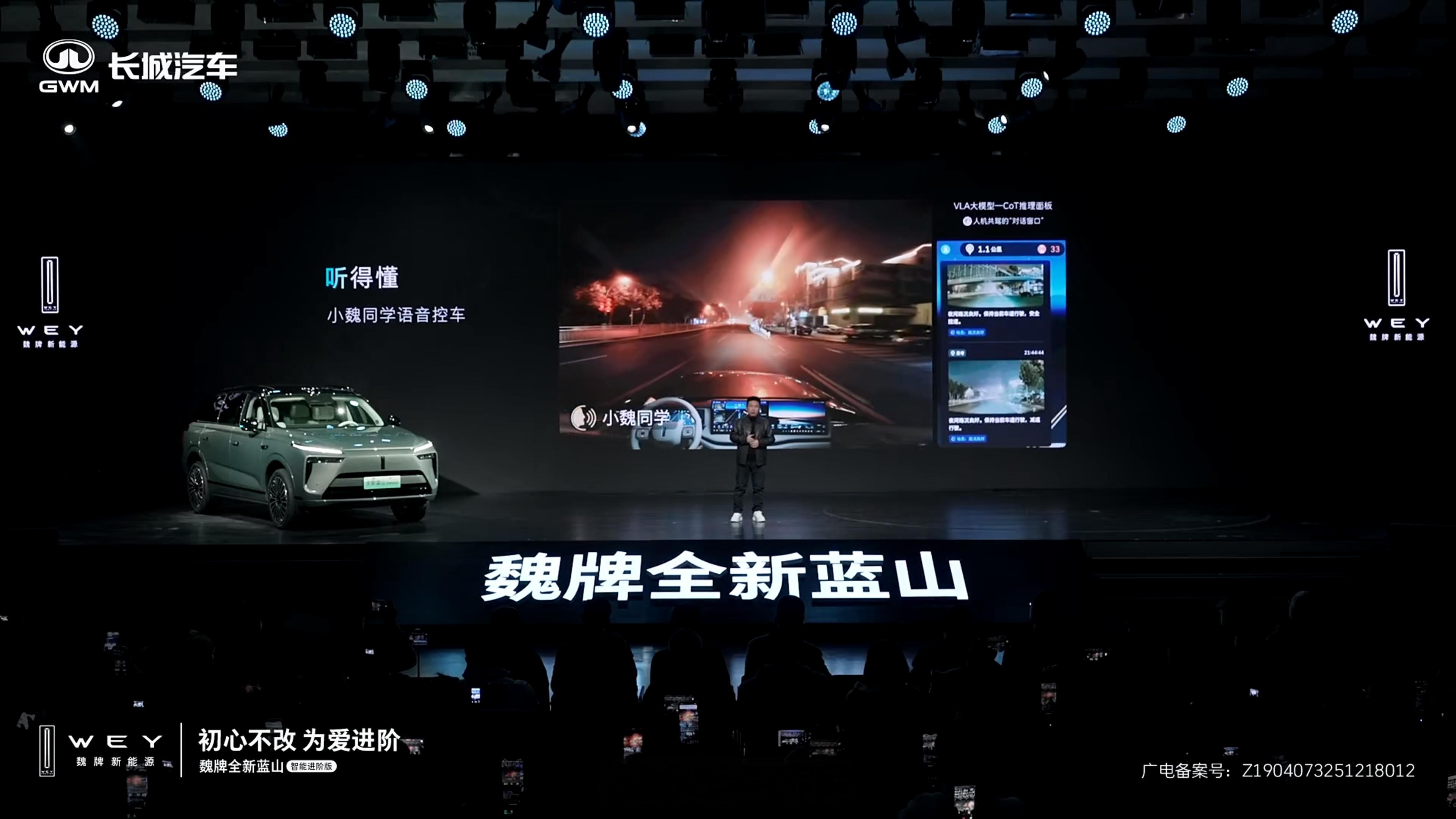 魏牌全新蓝山智能进阶版在辅助驾驶方面全面进阶。首先是硬件方面,芯片上采用了最新的英伟达 Thor 芯片,算力达到 700 TOPS。另外这次全新蓝山智能进阶版也在后视镜和车尾增加了辅助驾驶小蓝灯,同时这个小蓝灯在白天黑夜还有两档亮度调节。软件方面,全新蓝山智能进阶版搭载了长城首个 VLA 系统,在辅助驾驶界面增加了 VLA 的推理卡片,能够实时了解车辆的思考。同时还能够通过小魏同学来进行语音控车。42mark新能源汽车魏建军赌上姓氏造车后悔了吗