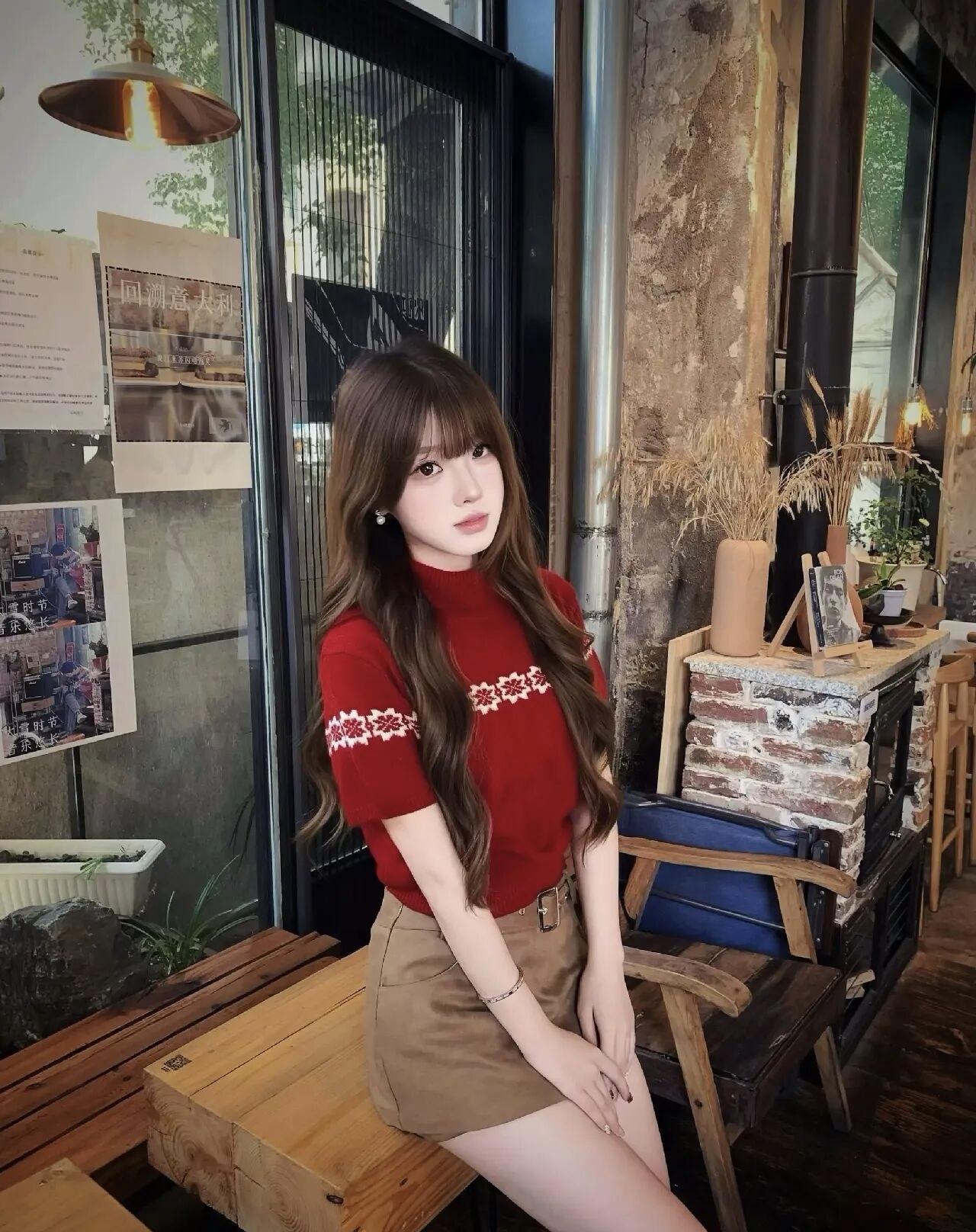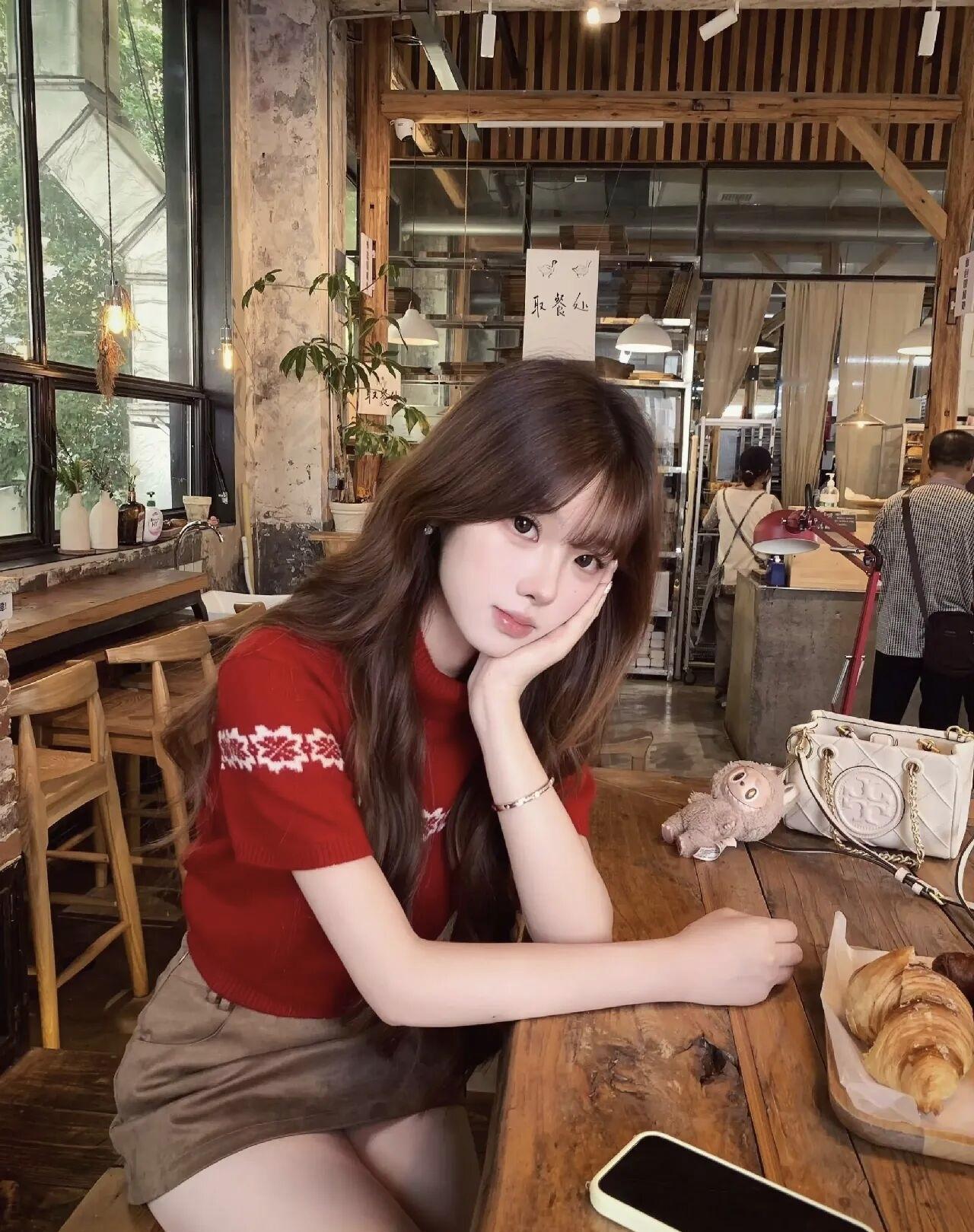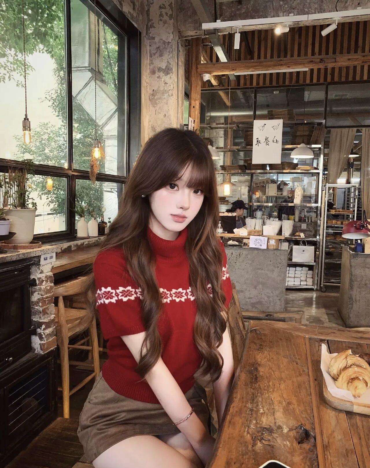 红毛衣撞上复古调调,咖啡香里偷藏一份冬日甜意☕️