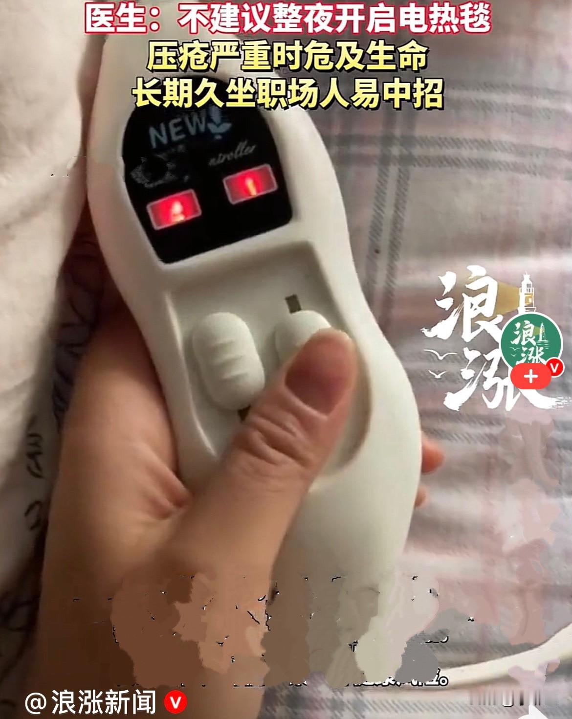 近日,浙江21岁的小林因长期颈椎疼痛休学在家,一天晚上,她开了一夜电热毯沉睡如石甚至整夜都没翻身,第二天早晨还是妈妈叫醒了她…… 可小林坐不起来了,屁股疼痛难忍,于是娘俩去了医院,经医生诊断小林得了褥疮需要手术…… 我怎么看她是直接睡在电热毯上了,应该把电热毯放在褥子下,而且不能整夜开,容易发生烧焦烧糊现象,多危险啊,我都是睡觉前先打开电热毯预热一会儿,褥子热了之后关了电热毯再安心睡觉…… 小林休学在家应该是平时都不咋动,再加上这一晚上的深沉睡眠,褥疮显现了…… 不能久坐不动看手机,不能整夜开着电热毯……