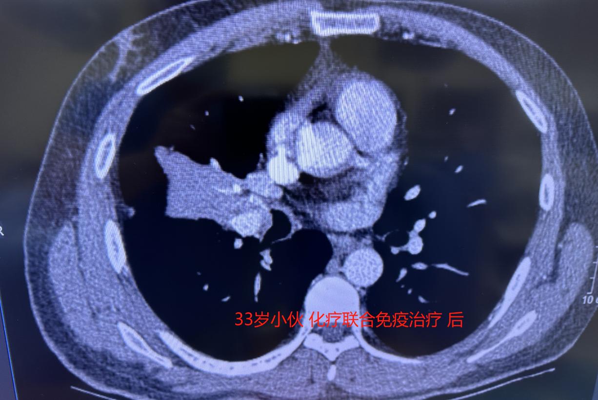 33岁的年轻人,因为咳嗽得厉害去检查,发现右肺中叶长了一个很大的肿瘤,进一步检查确诊肺癌,幸好还没有转移到其他地方,但整个右肺中叶几乎被肿瘤占满,周围的血管和气管也都受到了侵犯。 按照常规,像他这样没有基因突变的肺癌患者,目前效果比较好的方案是先做“化疗联合免疫治疗”,等肿瘤缩小后再手术,这样切除得更彻底。有效率本来有百分之七八十,算是比较高的。 但没想到,三次治疗下来,肿瘤一点都没缩小——这个方案对他竟然没起作用。 说实话,我心里挺沉重的......这么年轻,孩子还小,他比谁都渴望活下去。 作为医生,我也清楚,这不只是一个人的生命,更关系着一个家庭的未来。 既然药物治疗效果不好,我们团队商量后,决定直接手术。虽然风险大,但只有放手一搏,才可能有转机。手术采用微创胸腔镜,但因为肿瘤侵犯范围广,血管气管处理起来非常困难。 原本计划做袖状切除,但在手术中实际探查后,我们发现做“右肺中下叶联合切除”更稳妥、也更干净。于是术中果断调整了方案。 很庆幸,手术比预期还要顺利,肿瘤被完整切除了。 记得手术前,我和他认真聊过:手术有风险,我不能保证百分之百成功,但如果不去尝试,就一点机会都没有了。他听完,很勇敢地选择了信任我们。 这件事让我更深刻地感受到,面对棘手的病情,患者的勇气和医生的坚持,往往能一起推开那扇看似关着的门。 医学有时确实存在不确定性,但我们能做的,就是在不确定中尽力寻找确定——不放弃任何可能,才有机会等到转机。 如今回想起来,仍然为这个年轻人高兴。也想对大家说,无论遇到多难的情况,主动面对、积极行动,希望往往就在前方等着我们。[玫瑰][作揖]