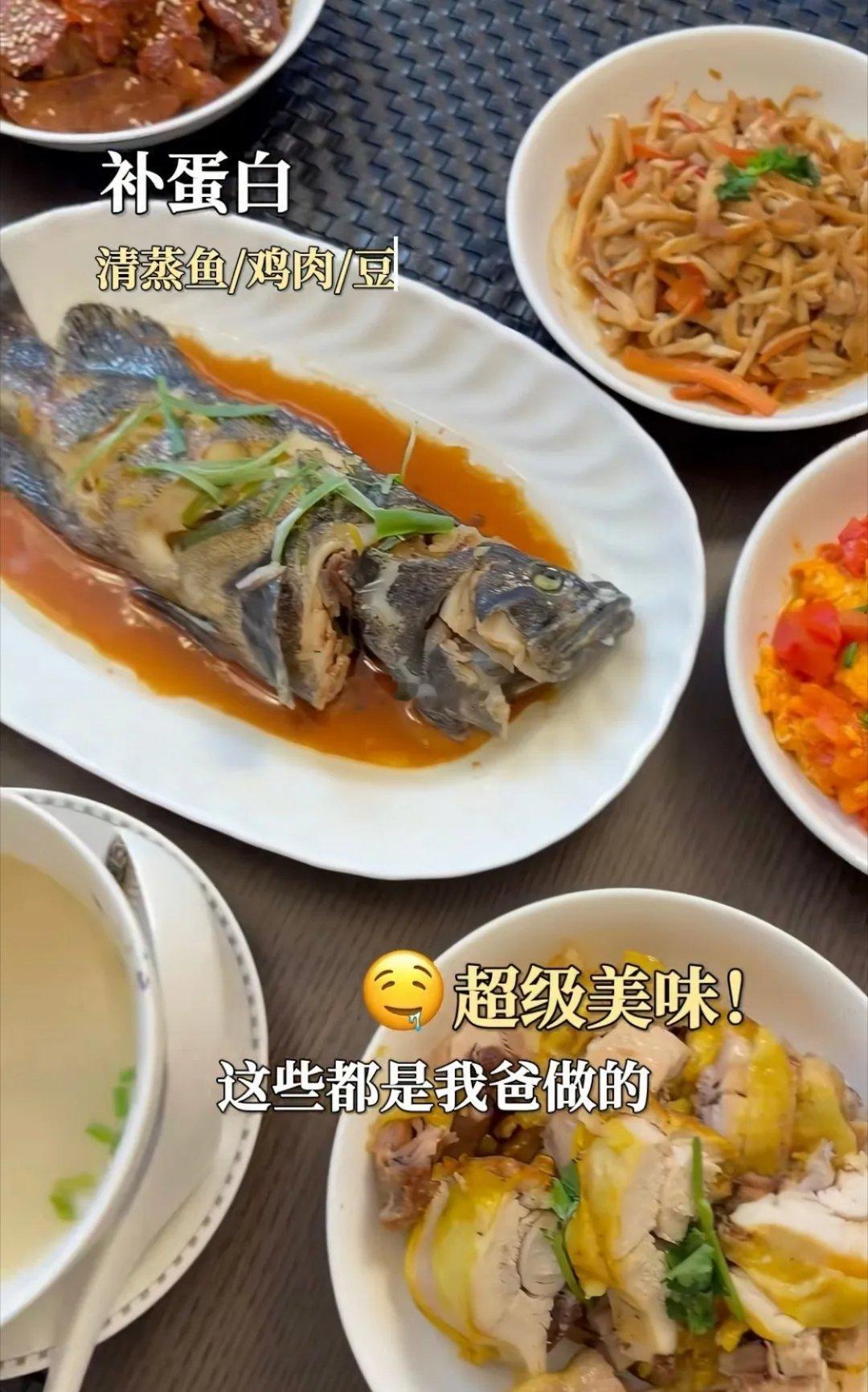 郭富城老丈人厨艺真好,方媛晒娘家爸做的6菜一汤,一顿饭有牛肉鸡肉和鱼肉,还有三个素菜搭配,“天王”家里伙食太好了。