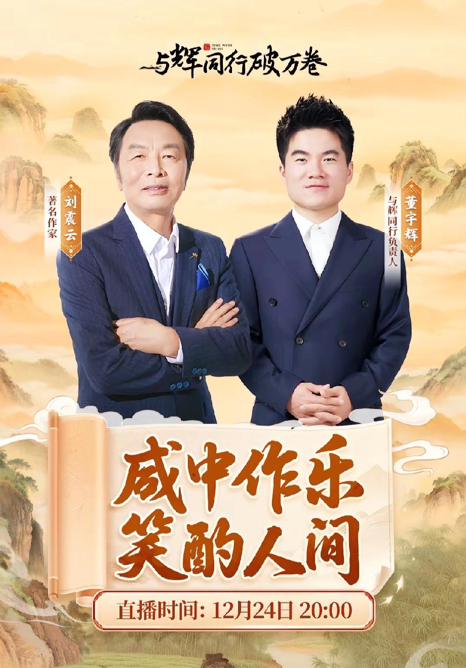 一个是最喜欢的作家刘震云老师,一个是最喜欢的主播董宇辉老师,他们在一起“闲中作乐,笑酌人间”又将擦出怎样的火花呢? 刘震云新作《闲的玩笑》,光是封面那句“世上有许多玩笑,注定要流着泪开完”和扉页上那句“世界各地,不同的街道上、街上走着的每一个人内心都有伤痕,大家都辛苦了”就能与多少人共情。 12月24日20:00,刘震云将做客与辉同行直播间,与董宇辉一起破万卷,敬请期待吧! 董宇辉 刘震云 与辉同行