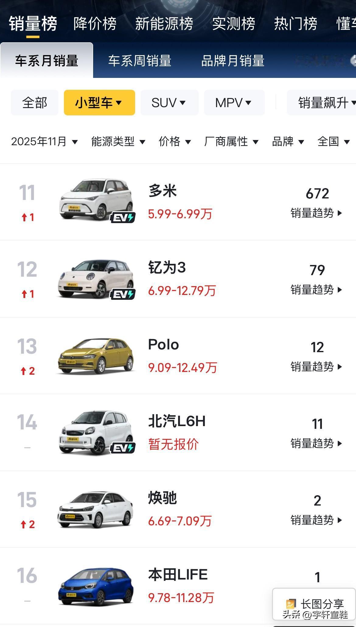 在“小酸奶”老师坚持不懈的努力下,50万以内最好的小型车-本田飞度,它终于卖断货了! 来自懂车帝平台11月销量数据,本田飞度以0销量的成绩,成功消失在小型车销量排行榜中,“小酸奶”老师也算是成功功成身退了! 据说,现在“小酸奶”老师,已经开始为国产汽车站台了,期待新的表现![呲牙]