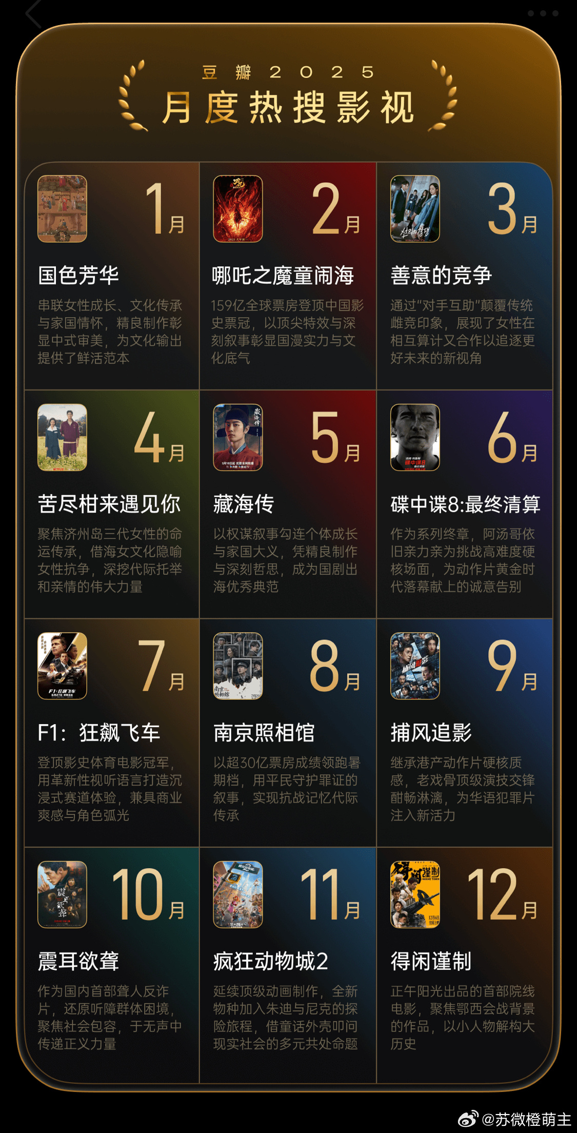 豆瓣2025年度电影榜单 韩剧相关最受关注演员 李惠利(善意的竞争)IU李知恩(苦尽柑来遇见你)2025月度热搜影视 3月 善意的竞争4月 苦尽柑来遇见你🍊2025年度热议角色 吴爱纯 苦尽柑来遇见你🍊