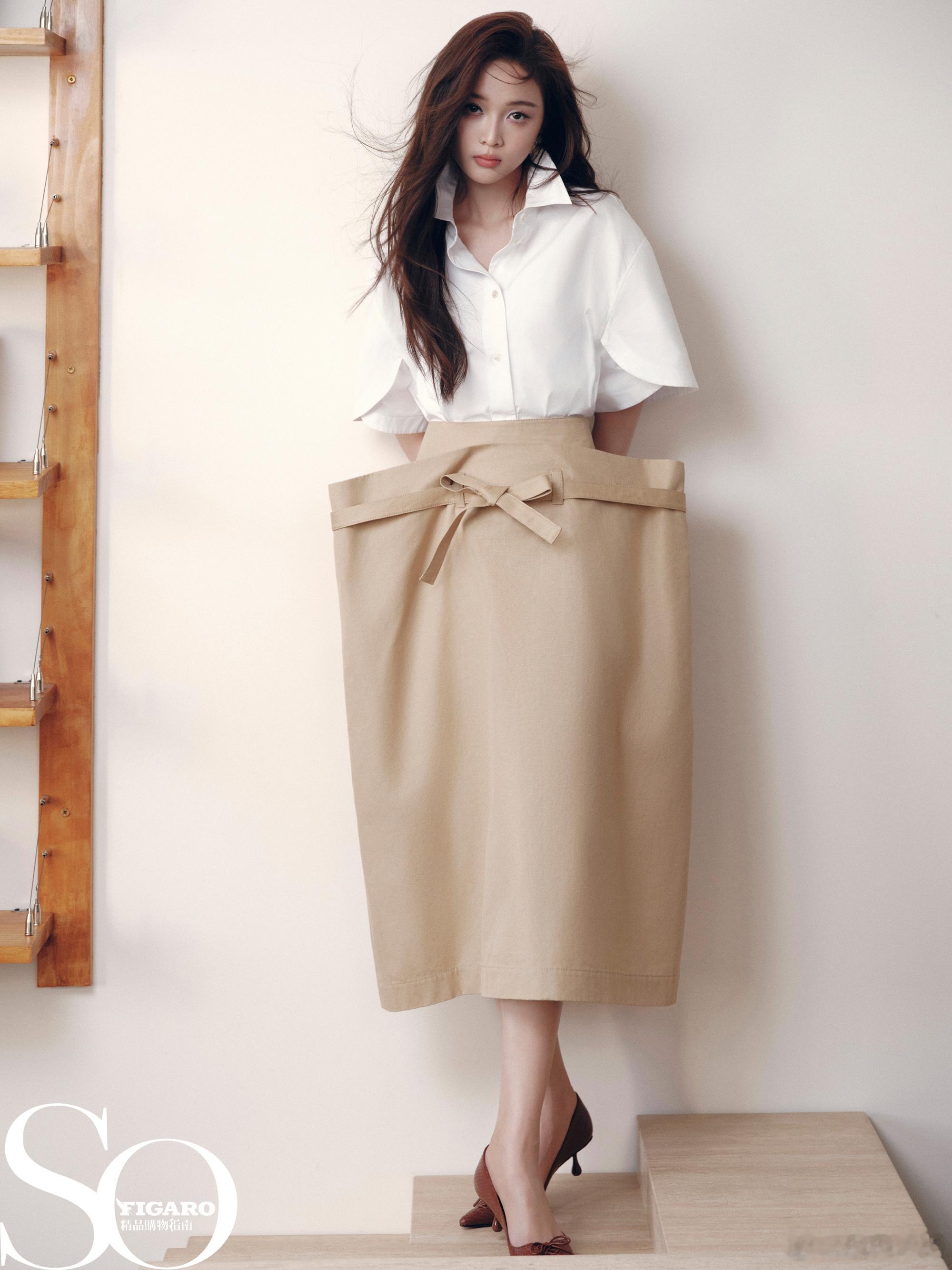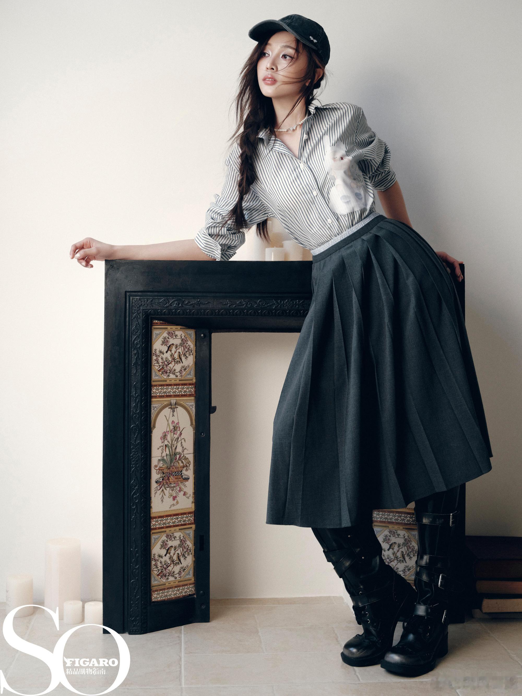 灰色大衣搭短裤,慵懒中透着利落感~ 白色纱裙配长袜,像是落入凡间的芭蕾精灵~ 牛仔外套配百褶裙,日常穿搭也能穿出层次感~ SoFigaro吴宣仪封面SoFigaro吴宣仪蝶变无声大片