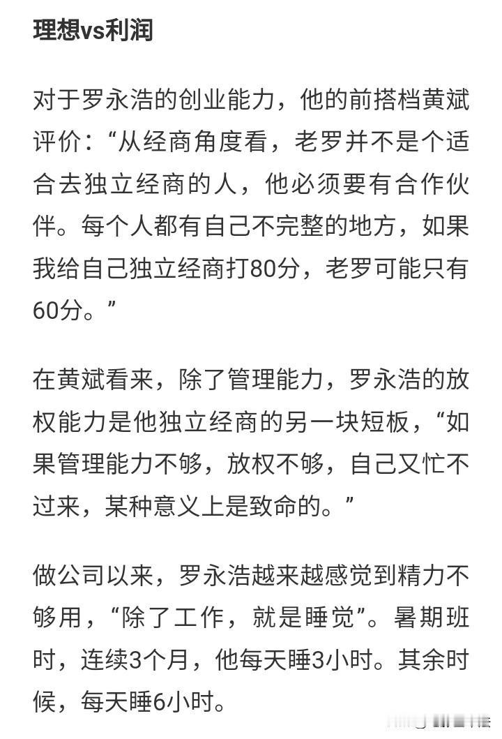 前同事评价罗永浩:想到20年前就无比恼火,罗永浩数不胜数的蠢事一句又一句的傻话,所有人拦都拦不住。公司里头烂得一塌糊涂,还整天在外吹牛,关键他吹的牛他自己还信了。 前同事还说,20年都没吱过声,是因为现在实在看不下去了,以前的罗永浩只是对企业一无所有还自诩为企业家,现在罗永浩整天在互联网碰瓷攻击别的真正的企业家。 罗永浩怼天怼地那么彪悍的一个人,为什么被前同事在网上反复挖苦他一个字都不回?唯一合理的解释只有一个,第一,前同事知道他很多事,就像他知道俞敏洪很多事一样;第二,前同事不像俞敏洪那么好说话。 之前罗永浩似乎从来没输过,并不是他多厉害,而是他从不打逆风局,被他欺负的人大气不和他计较,本质上就是欺软怕硬,支持罗永浩的人和他应该是同一类人,对于这样的人,现实中很多人考虑到“幸福者退让”原则,会避之不及,这样让他们产生“我最牛”的错觉,其实他们只是还没碰到硬茬而已。 图2、图3来自于2011年《南方人物周刊》对罗永浩的专题报道