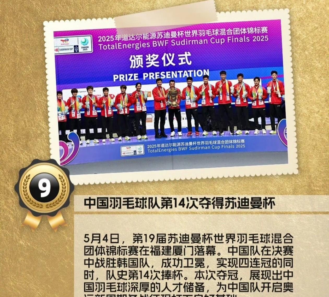 2025年中国体育十大新闻,樊振东和陈梦退出世界排名成功入围第十位! 想不到这件事影响那么大,还能排上年度十大新闻之一。 当时退世排一共3人 ,但这里只提了两人的名字,而马龙的名字却用“等”代替了。 因为退世排这事自始至终没有看到马龙说过什么,也没有看过反抗过WTT规章制度,退世排前马龙还打了中国大满贯赛,而退出世排后今年4月马龙已上任乒协副主席了。 虽然樊振东和陈梦他俩退出世排引发WTT改革,但2025年他们除了参加乒超和全运会以外,小胖和陈梦已整整一年没机会参加国际比赛了。 时间对运动员来说很宝贵,希望2026年能看到小胖重返国际赛场!