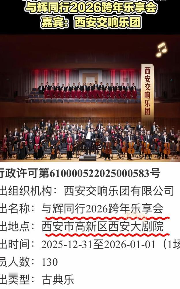 211同学太厉害了,真把与辉同行跨年音乐会的地点猜对了!今年依旧邀请了西安交响乐团,又到了吼哈的时候。 看来大家对与辉同行这场跨年演出盯得够紧,连具体的地点细节都被网友给提前锁定了。这次依旧请到了西安交响乐团助阵,看这架势,文化格调和专业水准是肯定稳了。 说实话,我特别佩服这些“课代表”的侦察能力。能从蛛丝马迹里把地点精准还原,大概是因为大家对这种有质感的跨年方式真的挺有共鸣。 去年那种充满力量感的节奏,感觉已经成了某种特殊的品牌符号。只要这熟悉的音乐一响,那种扑面而来的仪式感确实没得说。 比较遗憾的是,今年好像还是没打算公开售票,咱们普通路人大概率只能守着屏幕看了。这种不向市场妥协的纯粹感,反而让演出多了一层特别的意义。 我个人挺看重这种“老搭档”的回归。在这个追求新鲜感的时代,还能坚持和同一家顶级乐团合作,这种对审美认知的坚持在直播圈里确实挺少见。 现在大家估计都在搓手等官方那部宣传大片。 估计宣传片一出,整个跨年的氛围就要被彻底点燃了。 至于具体的流程和后续细节,咱们还是得继续仰仗各位“211同学”多多打探,坐等新的消息同步。