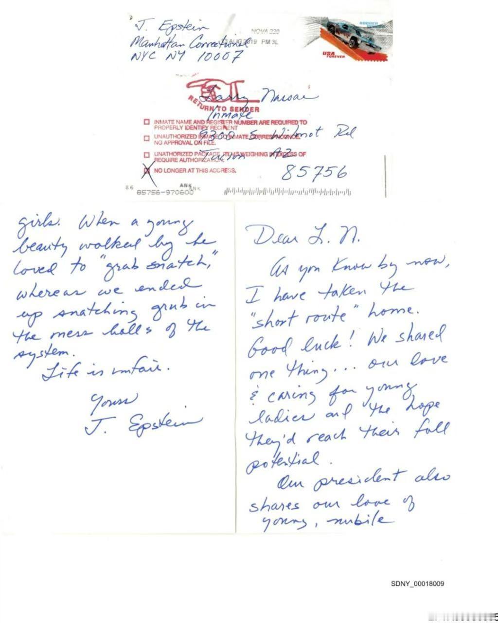 这是一封爱泼斯坦2019年写给美国前奥运队医纳萨尔的信, 美国前奥运队医纳萨尔因性侵未成年人案件于2017年12月被判60年监禁。爱泼斯坦写到 :"…我们(指他和特朗普)有一个共同点,我们对年轻女孩的爱与关怀, 希望她们充分发挥潜力,我们的总统也分享我们对年轻、有吸引力女孩的爱,当美女经过时, 他喜欢碰她们的下身。"特朗普可能真要打一仗来转移民众对爱泼斯坦文件信息的注意力。美国斩杀线热点现场海外新鲜事