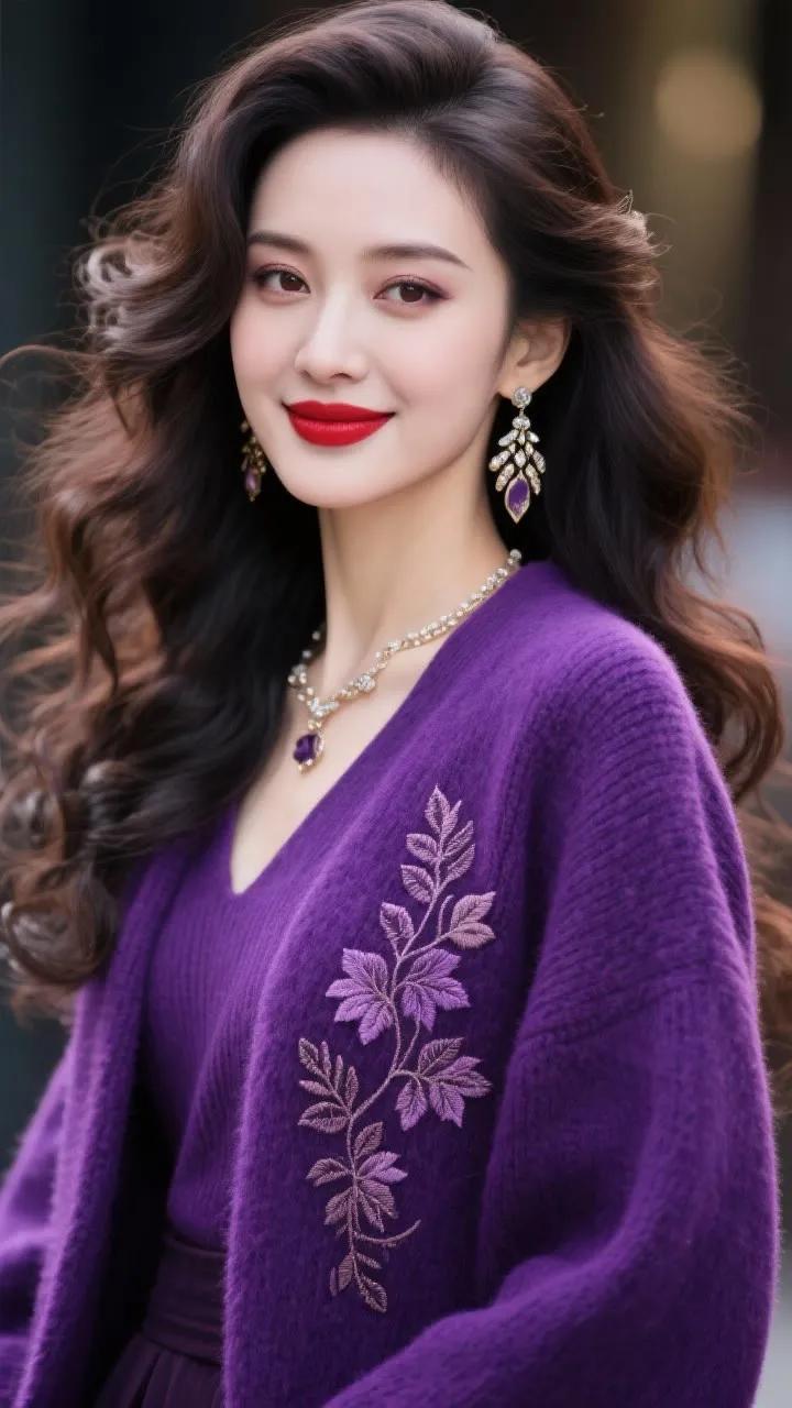 海边少女穿搭指南:紫色露肩裙+珍珠项链,优雅动人!