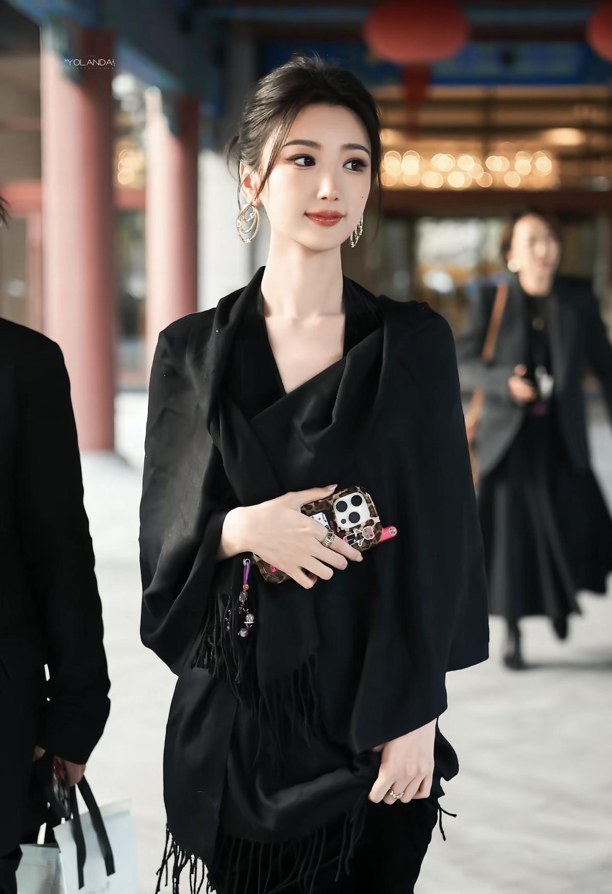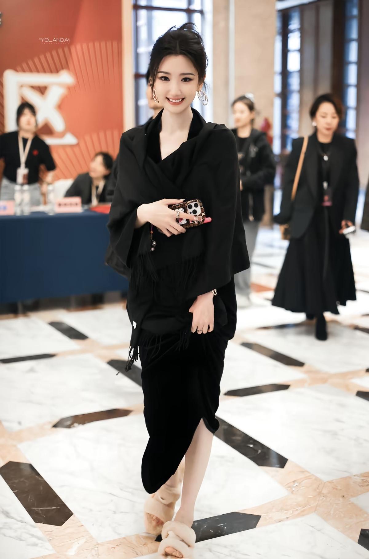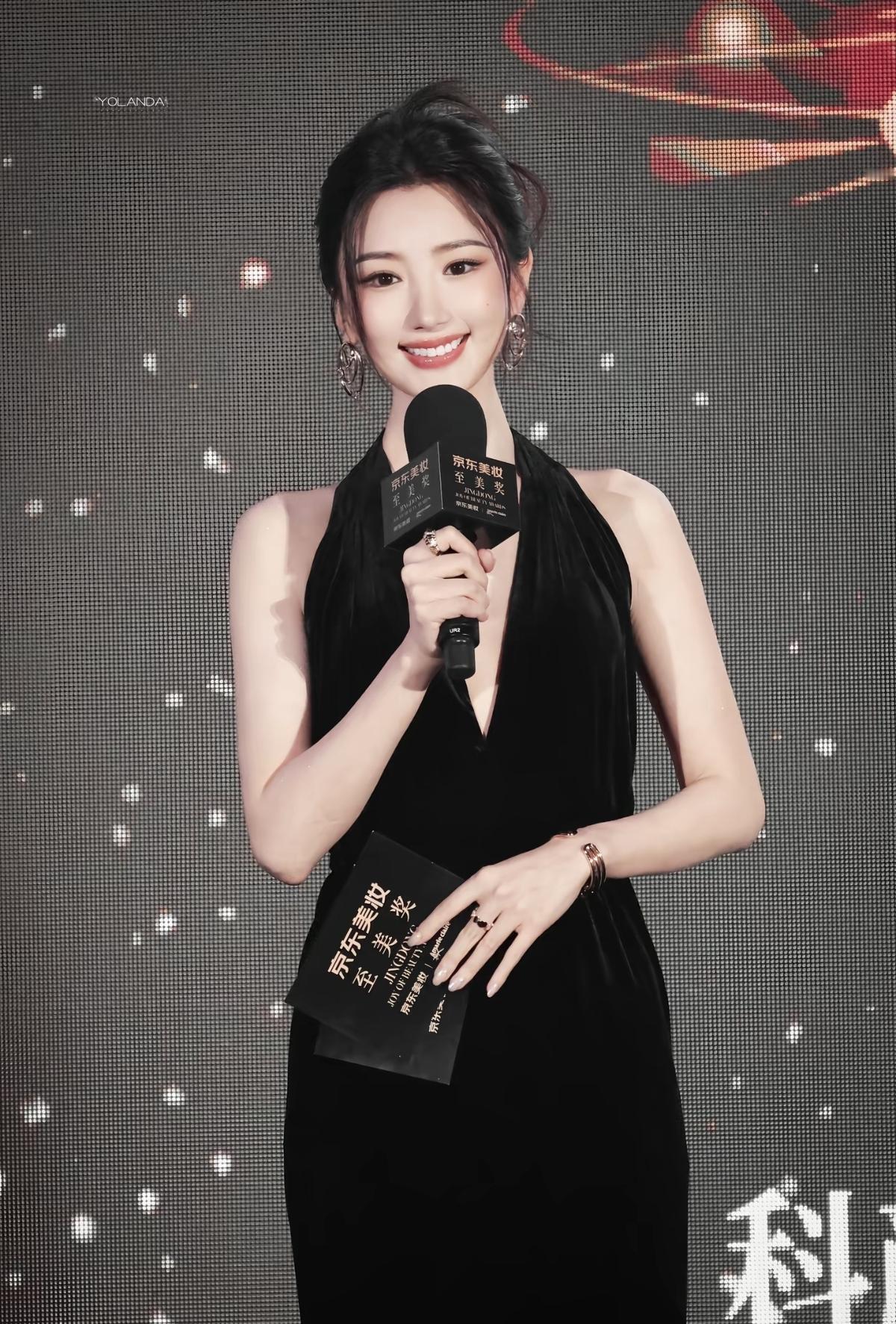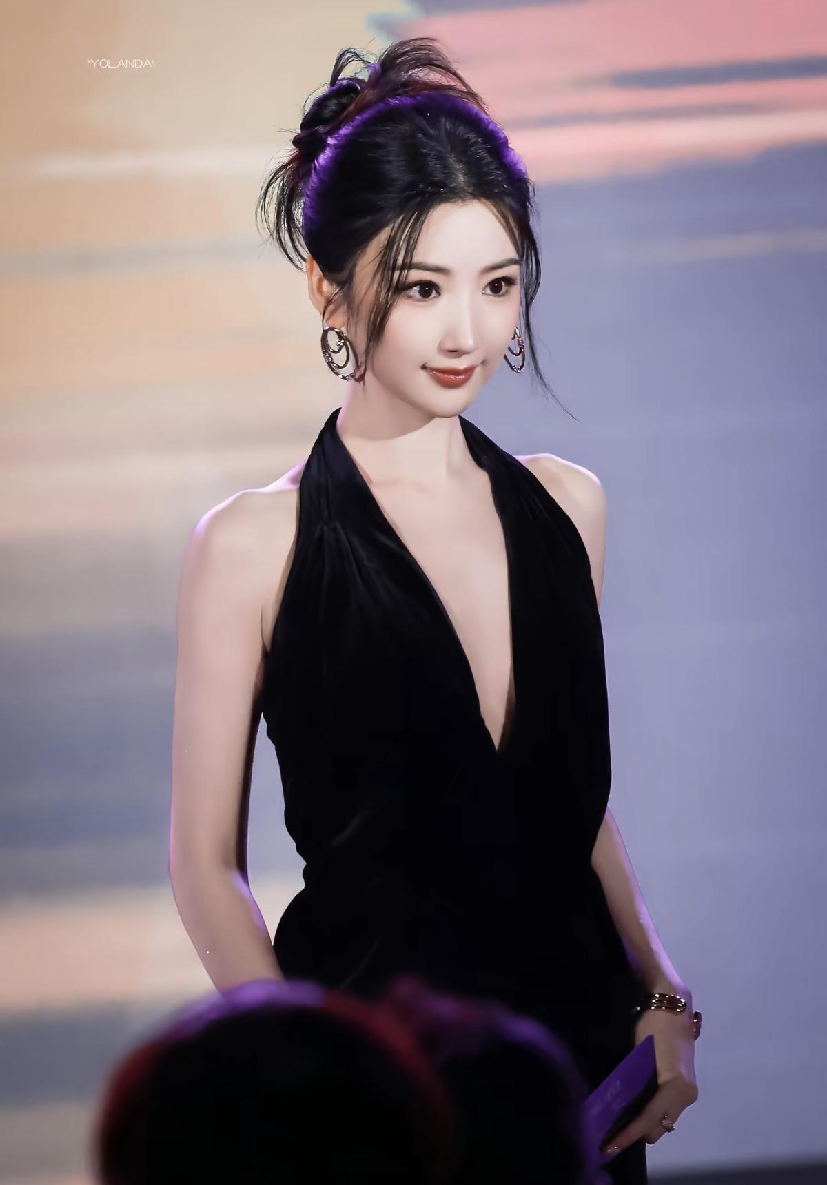 黑色挂脖礼裙剪裁利落,衬得毛晓彤身姿窈窕,自带清冷贵气,站在那里就是自带聚光灯的