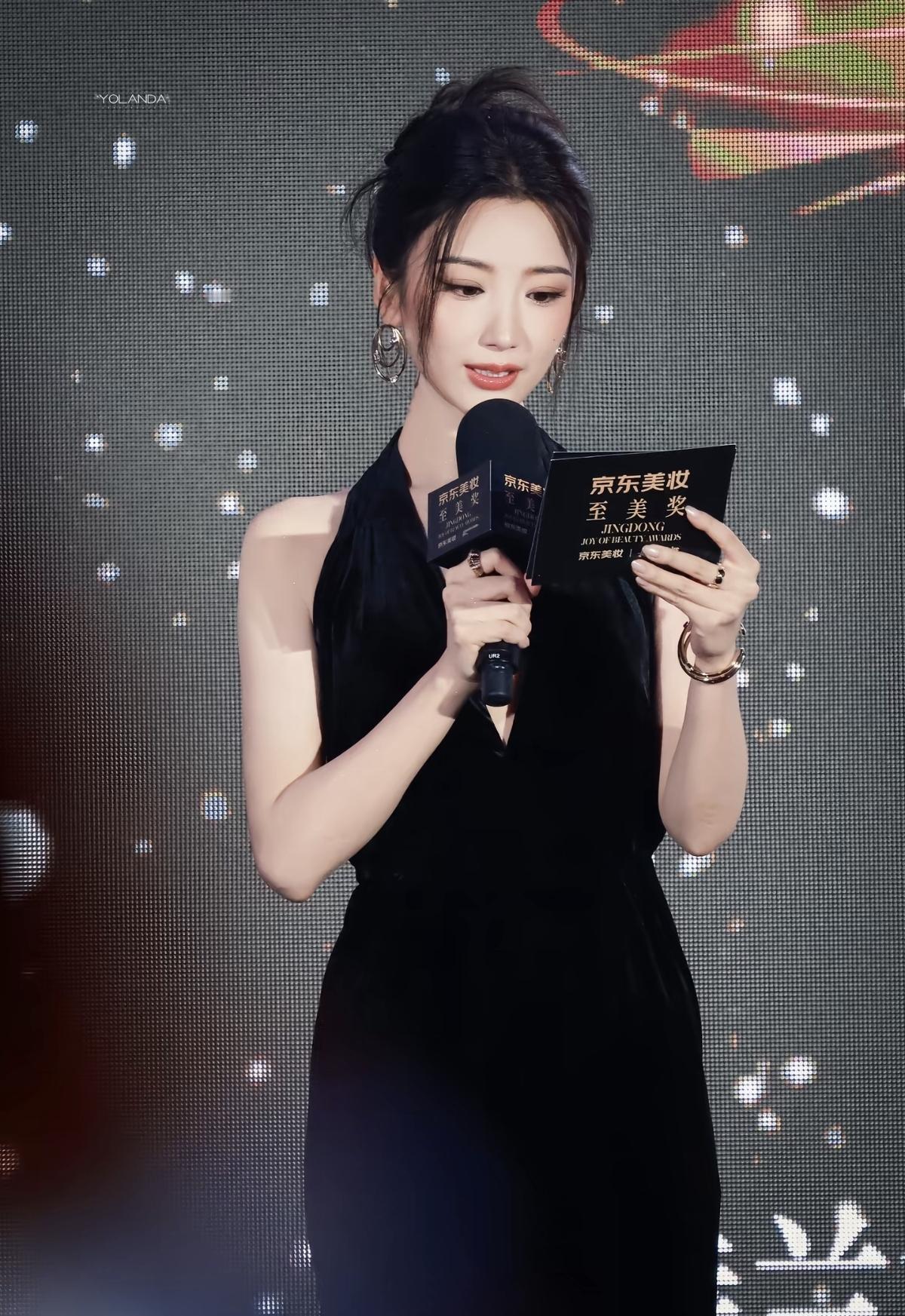 王玉雯的黑色挂脖露背礼服太会拿捏质感!纤细挂带贴合脖颈,露背设计不张扬不刻意,却