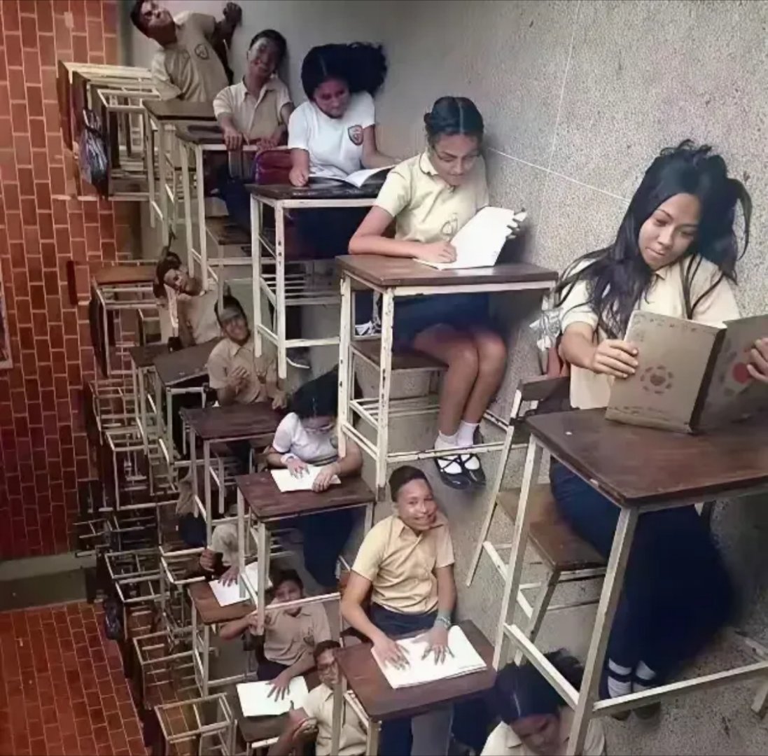 左边的人都伸出支手抓着右边人的桌腿,效果会更好。
