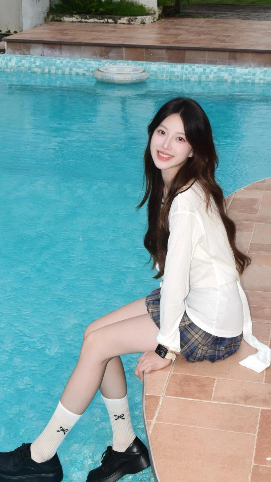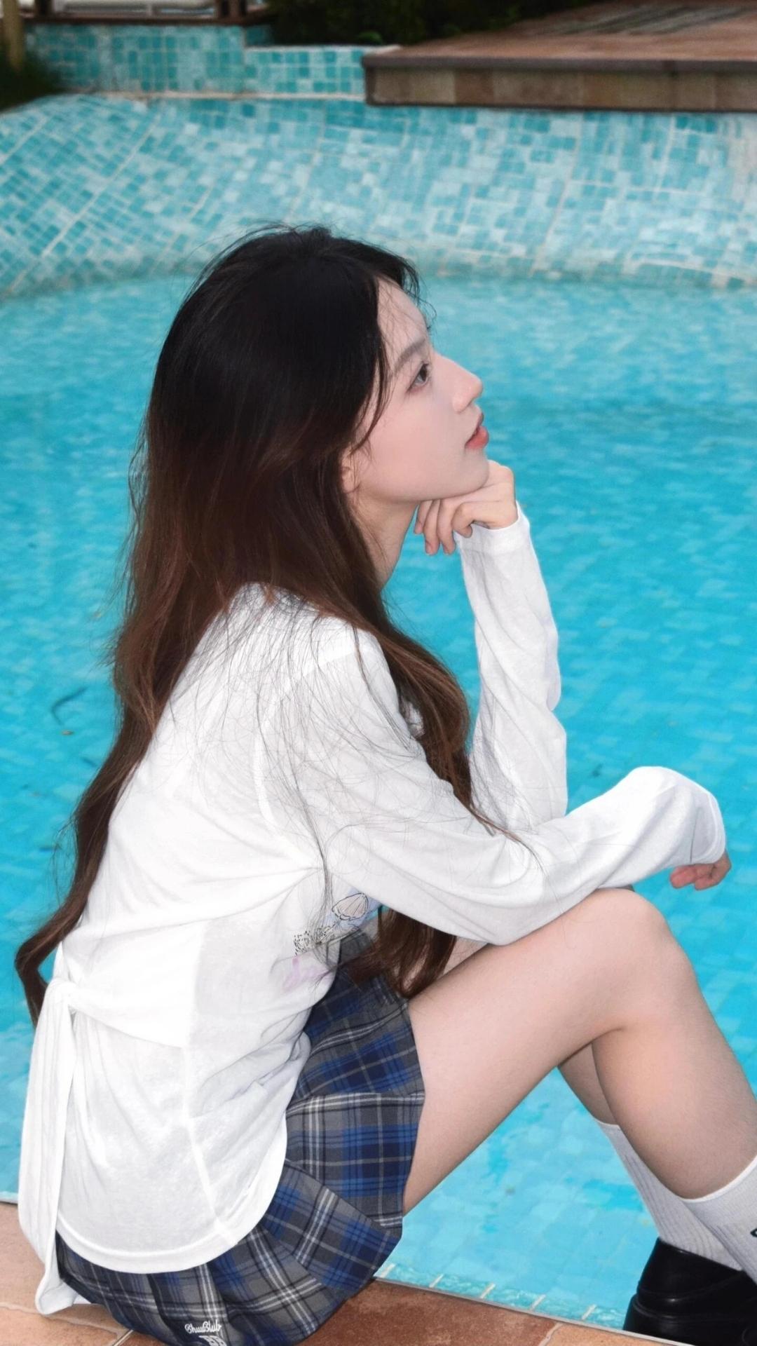 少女摄影|NO.0204期 阳光甜妹泳池边自信随拍 把少女感牢牢锁在身上