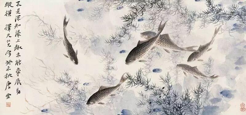 如鱼得水:笔墨里的自在江湖 🐟 看画家笔下的“如鱼得水”,总藏着最鲜活的意趣。 或用淡墨勾出鱼的脊背,弧线流畅得像被水流熨过,尾鳍轻摆,带起几缕墨色的涟漪,仿佛下一秒就要游出纸面;或用没骨法点染鱼身,青灰里掺着银白,鳞片闪着细碎的光,周围的水纹用枯笔扫过,虚虚实实间,倒比满纸浓墨更显水的清透。 有的画里,一尾红鲤穿莲而过,尾鳍扫过荷叶的露珠,墨色的叶与朱红的鱼撞出热烈;有的只画三五条小鱼,聚在水草边,墨色淡得几乎透明,像被阳光晒暖的水,裹着它们慢慢游。 “如鱼得水”从不是拥挤的热闹,是鱼与水的默契——水给了鱼自在,鱼给了水生气。笔墨里藏着的,是那份“不用追赶,不必慌张”的松弛,像我们心里都盼着的:在属于自己的天地里,慢慢游,好好活。 如鱼得水 水墨意趣 自在生活