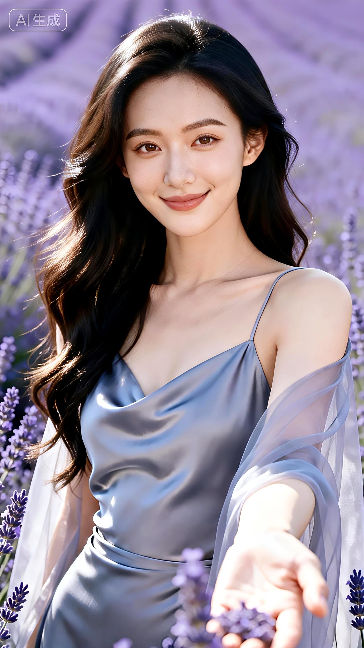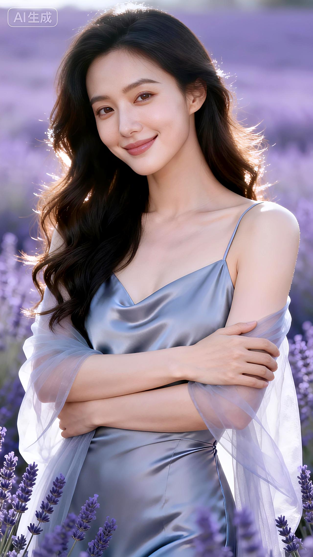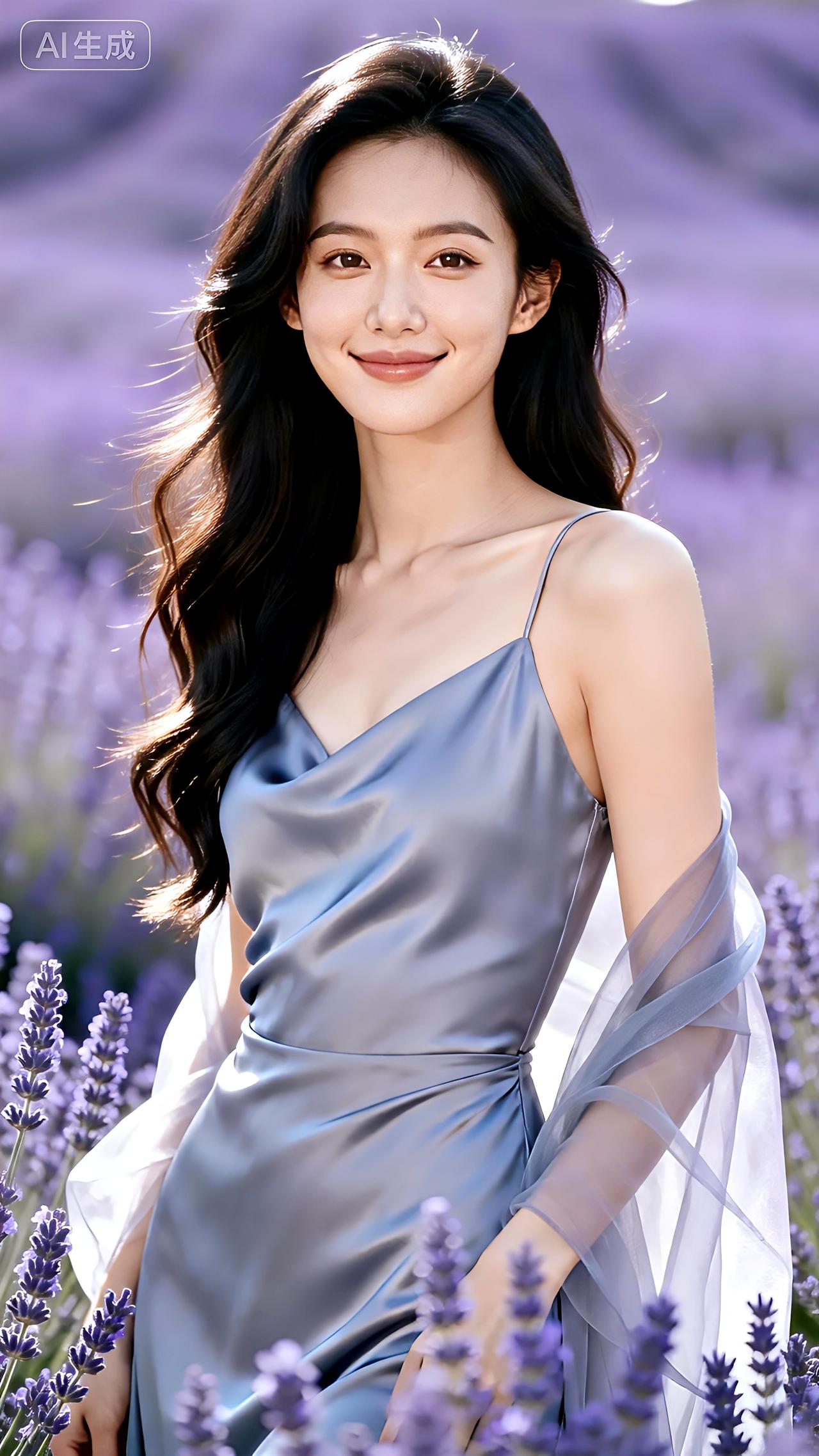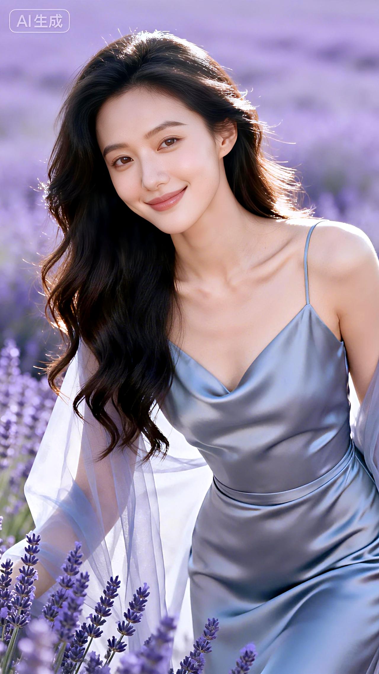 晨露浸染的薰衣草田里,她如月光凝成的仙子,纱裙轻扬间,带着整个清晨的温柔与静谧。