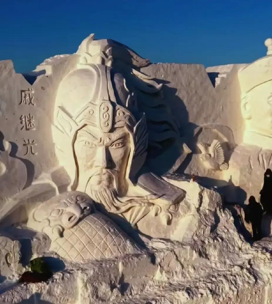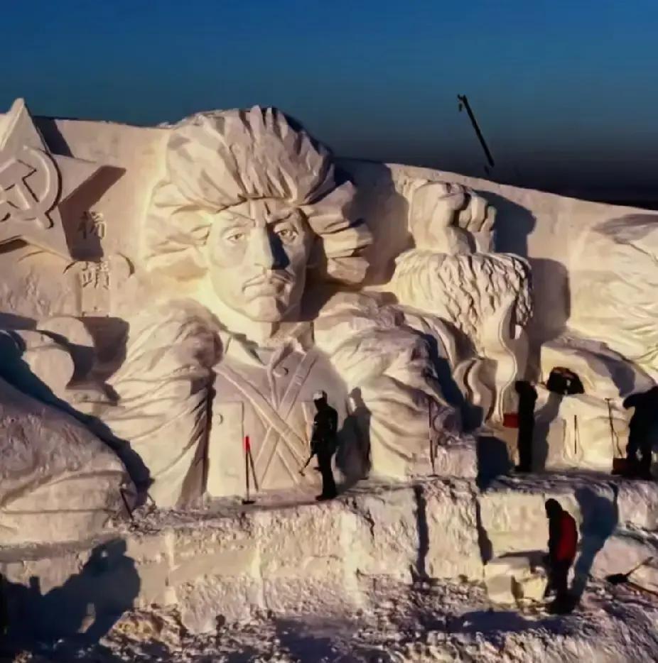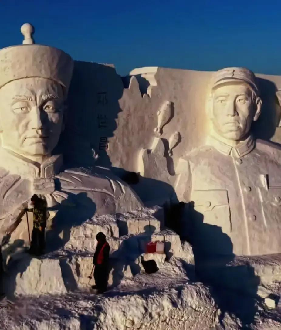 长春把杨靖宇,赵尚志,12月23日报道,左权几位抗日英雄直接雕进三米多高的雪里,