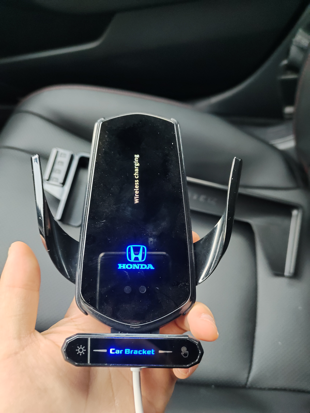 雅阁十一代汽车配件手机支架 雅阁不习惯内置自带导航的车主,可以额外购买手机支持,这款角度可以调节,支持无线充,支持有线充,有线充需要安装特殊转接头。手机夹持功能,触摸点击打开,几秒后会自加紧。带发光LOGO,可以控制显示或不显示。