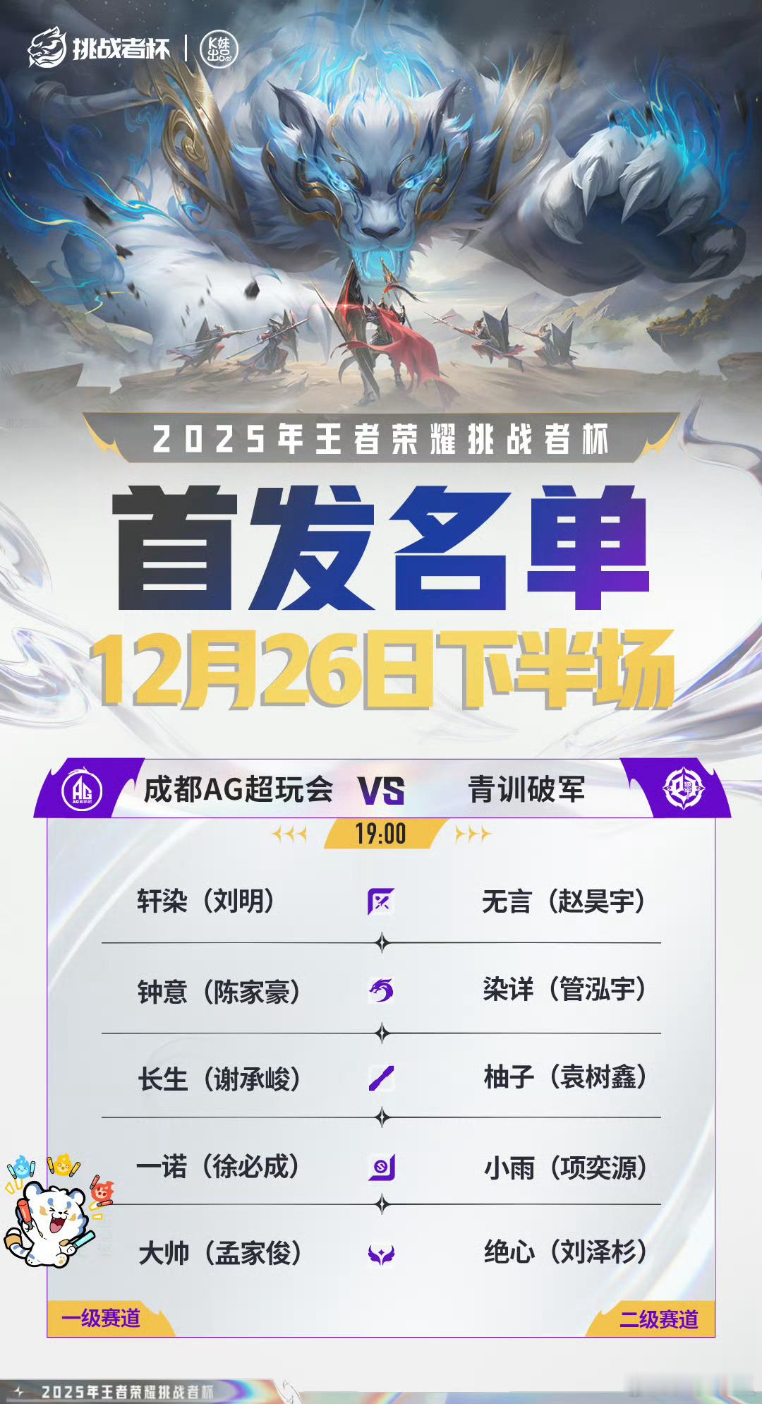 2025王者荣耀挑战者杯今日首发名单