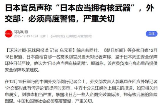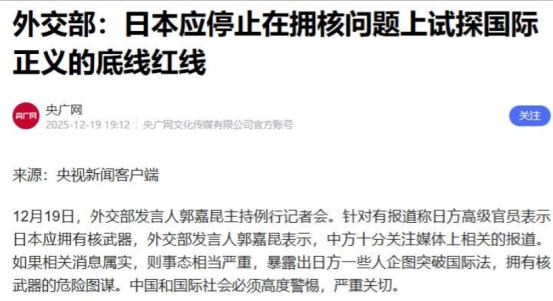 高市拥核试探结局来了!鲁比奥用日本的牌,锁住日本   “搬起石头砸自己的脚” 这句老话,这回在日本右翼身上演得明明白白。12 月 18 日,首相高市早苗的亲信、负责核裁军事务的首相辅佐官尾上定正,在记者会上放了句 “日本应该拥有核武器” 的狂言。   本想借着中美博弈的风头试探底线,结果短短 24 小时就被架到了火上烤,最后非但没捞到好处,反倒被自己的 “盟友” 美国反手捆住了手脚。   这哪是什么 “个人意见”?分明是高市内阁蓄谋已久的试探。自从两个月前上台,这位极右翼首相就没闲着:先拿台湾问题挑事,又把防卫费提至 GDP 的 2%,还忙着修改《国家安全保障战略》这三份安保文件,连 “无核三原则” 都敢拿出来掂量。   尾上定正这话,不过是把内阁的心思摆上了台面,毕竟敢让负责核裁军的人喊 “拥核”,好比让消防队长教人放火,背后没人撑腰才怪。高市的算盘打得叮当响:一边用 “核牌” 向美国施压要更多安保承诺,一边想借中美摩擦搞 “军事正常化”,算盘珠子都快崩到国际社会脸上了。   可她忘了,日本最没资格谈 “拥核”。消息一出,广岛县议会当天就炸了锅,全票通过意见书痛斥:“80 年前的核灾难忘了吗?作为核爆受害国,你有什么脸谈造核弹!”   长崎的核爆受害者团体更直接,骂这是 “践踏 80 年的苦难”,拉着横幅堵在了自民党总部门口。连日本前首相野田佳彦都忍不住骂:“有这种想法的人当首相亲信,就该立刻辞职!”   自民党内部也吵翻了,前首相石破茂戳破真相:“拥核就得退出《不扩散核武器条约》,到时候核电都得停,日本能耗得起吗?” 街头抗议的民众更直白,举着 “高市内阁下台” 的牌子喊到嗓子哑,毕竟没人想让家乡再遭一次核灾难。   国际社会的巴掌来得更快更狠。中国外交部发言人林剑 24 小时内连抛三问,直接戳穿日本的野心:“《波茨坦公告》让你‘完全解除武装’,《不扩散核武器条约》不准你造核武,这些国际法义务当废纸?”   国防部发言人张晓刚更硬气,直言这是 “冒天下之大不韪”,警告必须遏阻军国主义招魂。俄罗斯副外长鲁坚科紧跟着表态反对,朝鲜直接骂这是 “战犯国家的侵略野心”。短短一天,中日俄朝四方表态,把高市的试探砸得粉碎。   最致命的一击,来自美国国务卿鲁比奥。12 月 19 日的记者会上,面对日媒追问,他没骂也没夸,轻飘飘一句 “日本是核不扩散的全球领导者,也是美国重要伙伴”,直接给日本套上了紧箍咒。   这话里的门道可深了:先把 “核不扩散领导者” 的帽子扣死,你要是敢造核弹,就是自己砸自己招牌;再补一句 “要和中国搞建设性合作”,等于明着告诉高市:别想拿中美摩擦当筹码,美国的棋局里,日本没资格乱出牌。   高市这下彻底懵了。本来想借拥核论逼美国松绑,结果鲁比奥一句话就锁死了所有路。要知道,日本右翼的底气全靠《美日安保条约》,可现在美国明摆着 “不选边站”,既想稳住同盟,又不愿得罪中国。   更打脸的是,美国学者库兹尼克都看不过去了,戳穿日本 “只差拧一下螺丝刀” 就能造核弹的真相,警告这是 “全球灾难”—— 手里有技术有钚材料,却连美国的底线都摸不准,这试探简直是自曝其短。   如今这场闹剧的结局已然清晰:尾上定正没辞职,高市早苗也没道歉,但 “拥核论” 彻底成了过街老鼠。26 日日本敲定的 122 万亿日元预算里,防卫费涨归涨,却连 “核潜艇” 都不敢明写。   修改 “无核三原则” 的讨论更是悄无声息没了下文。就像当年 “尼米兹” 号摔了飞机灰溜溜回国,高市这波耀武扬威的试探,最终也以 “偷鸡不成蚀把米” 收场。   可这事绝不能就这么过去。高市内阁敢把 “拥核” 摆上台面,背后是防卫费连续 14 年上涨、自卫队教材渗进 “靖国史观” 的长期铺垫。   现在虽然被摁下去了,但只要右翼势力还在扩军,这种试探就迟早还会来。鲁比奥的表态不是保护,而是把日本当成了 “不会咬人的棋子”,既不让你拥核惹麻烦,又要你当遏制地区的马前卒。   说到底,日本的安全从来不是靠核弹,而是靠遵守战后秩序。高市早苗要是真为日本好,该做的是给核爆受害者鞠躬,而不是让负责核裁军的人喊着造核弹。   要是哪天真把试探变成真,别说中美俄不答应,首先炸锅的就是广岛长崎的老百姓。这算盘崩了自己的手,但愿能让她记牢:军国主义的老路,走一步就是万丈深渊。
