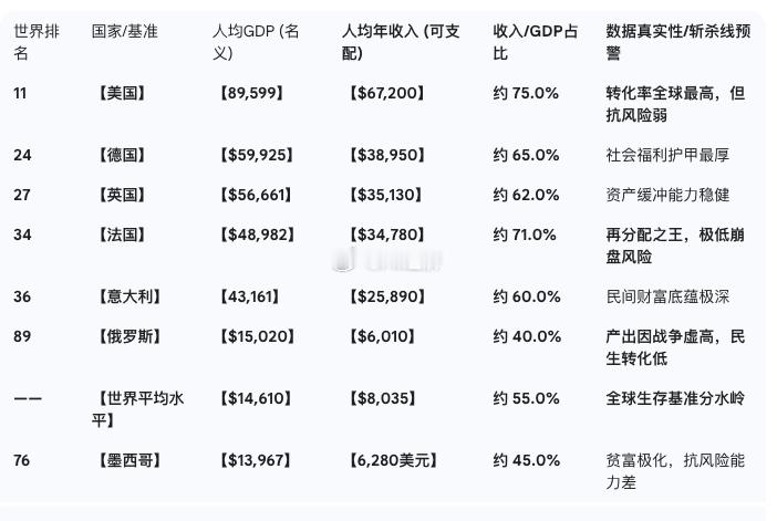 日本前所未有的熊尸危机美国斩杀线美国斩杀线现象 看看冷冰冰的数据吧 人均收入/GDP(最相关) 亚洲排名 世界排名