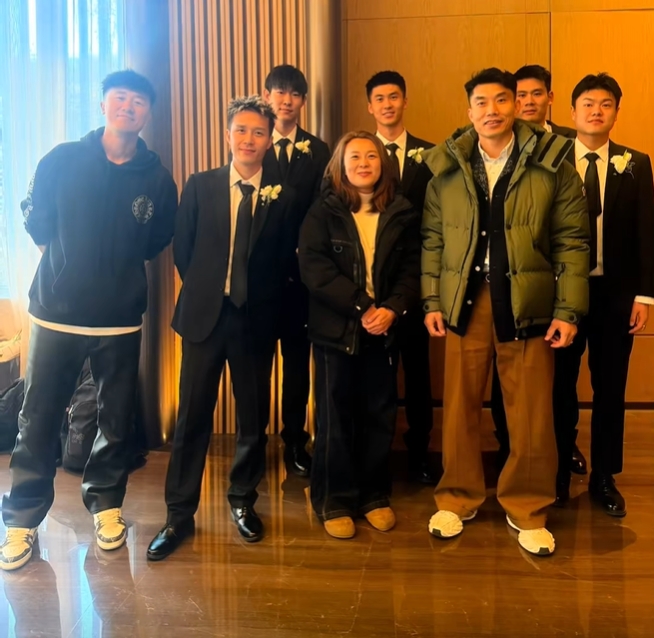 日前,国脚高准翼在家乡延吉举办婚礼,多名前恒大队友和山东泰山队友一同出席。伴郎团也算高规格,不仅有前恒大队长郑智,还有前恒大队友杨立瑜、吴少聪和张健智等。 除此以外,作为山东泰山队友的刘洋也应邀出席,不过他的着装和郑智类似,也许是没有当伴郎,所以穿的有点休闲。 巧合的是,杨立瑜、吴少聪和张健智这三人目前都在北京国安效力。