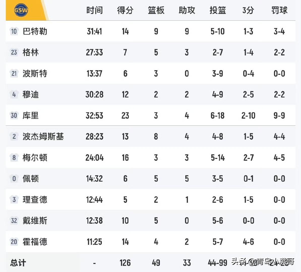 浓眉伤退!!!库里23分,克莱7分,勇士主场擒独行侠! 圣诞大战第三场结束了,勇士主场迎战独行侠,也是克莱再次回到熟悉的球馆,水花兄弟再次相见,只不过这次两人穿着不同颜色的球衣,而克莱也没有找到熟悉的篮筐,最新勇士126-116击退独行侠。 勇士方面: 库里23分,巴特勒14分,穆迪12分,波杰13分,梅尔顿16分。 独行侠方面: 弗拉格27分,威廉姆斯26分,克里斯蒂13分,华盛顿14分,马绍尔14分。 本场比赛,浓眉再次受伤离场,这家伙真的是太脆了,一点都不能抱任何希望。 库里和克莱赛前的拥抱让人印象深刻,只不过再也回不到过去了。 勇士上半场确立领先优势,下半场独行侠虽然表现还可以,但是已经挖的坑填不回来了。 勇士队 金州勇士 独行侠 库里