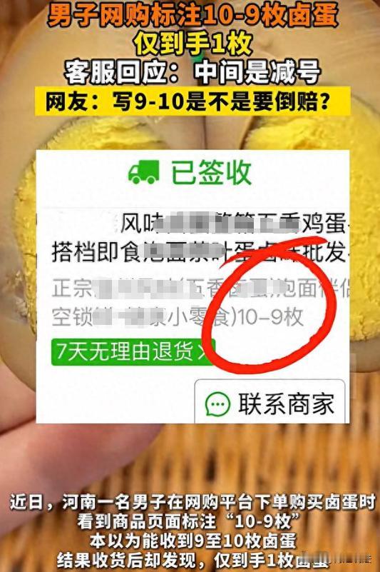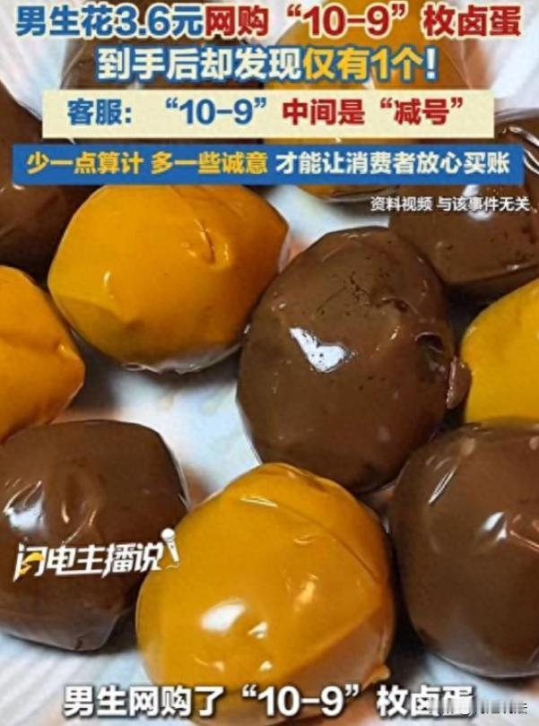 河南,一男子在网上买卤蛋,看到店家标注“10 - 9枚”,卖价3.6元,以为是9到10个,便下单。结果收到货只有1枚,询问商家,商家称“-”是减号,10减9就是1枚。男子无语,将经历发到网上提醒大家避坑,网友纷纷吐槽店家套路多。 (本信息来源于:极目新闻、大河报、红星新闻) 男子嘴馋想买卤蛋,在网上挑的时候,瞅见一家店标注“10 - 9枚”,才3.6元。他寻思着9到10个这么便宜,就下单了。 过了几天收到货,打开一看居然只有1枚,男子当时就有点懵圈了。 心想,这咋回事?我买的卤蛋咋就1个呢? 他以为店家发错货了,赶紧就联系商家询问情况。 联系上店家后,商家的回复可把他气得不轻,商家居然说:- 是减号,10减9就是1枚。 男子听到店家的解释,他觉得自己被耍了。 男子赶紧把订单截图给店家看,想让店家看看清楚,自己下单的时候可不是这么理解的。 可店家,还是坚持自己的说法,一口咬定 - 就是减号,1枚就是正确的数量。 男子这下是真无语了,他觉得这店家太不地道了,这不是明摆着坑人吗? 大家觉得商家这种解释合理吗? 正常人都不会把“10 - 9枚”理解成10减9等于1枚,这明显就是店家在玩文字游戏,故意误导消费者。 男子越想越气,觉得不能就这么算了,得让更多人知道这事,避免大家也上当受骗。 于是,他就把这事发到了网上,提醒大家避坑。 这消息一传开,网友纷纷吐槽,说这店家套路太多了,这种文字游戏太坑人。有的网友还说自己以前也遇到过类似的事,被店家坑得够呛。 商家这么玩文字游戏,对他们的生意会有什么影响呢? 消费者都不是傻子,被骗一次就不会再上当了。 而且大家还会把这事告诉身边的人,一传十十传百,商家的口碑就坏了,生意肯定越来越差。 从法律的角度来看,商家把“10 - 9枚”的“-”曲解成减号,这明显是侵犯了消费者的知情权。 消费者在买商品的时候,有权知道商品的真实情况,包括数量、质量、价格等等。 店家这么玩文字游戏,就是故意隐瞒商品的真实数量,让消费者产生误解,从而达到销售商品的目的。这种行为已经构成了欺诈。 按照《消费者权益保护法》的规定,经营者提供商品或者服务有欺诈行为的,应当按照消费者的要求增加赔偿其受到的损失,增加赔偿的金额为消费者购买商品的价款或者接受服务的费用的三倍;增加赔偿的金额不足五百元的,为五百元。法律另有规定的,依照其规定。 店家就应该按照退一赔三的原则,对男子进行赔偿。店家还可能面临行政处罚,对店家的这种欺诈行为,进行调查和处理。 男子可以向消协投诉,也可以直接起诉店家。 只要有相关的证据,有订单截图、和店家的聊天记录等等,男子的胜诉几率是很大的。 作为消费者,在网上购物的时候,一定要擦亮眼睛,仔细看清楚商品的描述和说明。 不要被一些低价诱惑所迷惑,更不要轻易相信商家的文字游戏。 如果遇到类似的情况,要及时和商家沟通,保留好相关的证据,维护自己的合法权益。 店家,也应该诚信经营,不要总想着玩一些小聪明、小套路。 诚信才是做生意的根本,只有诚信经营,才能赢得消费者的信任和支持,生意才能长久。 要是总想着坑蒙拐骗,那迟早是要栽跟头的。 您觉得店家玩这种文字游戏,消费者该如何更好地保护自己的权益呢? 希望大家都能在评论区说说自己的想法,让我们一起探讨探讨。
