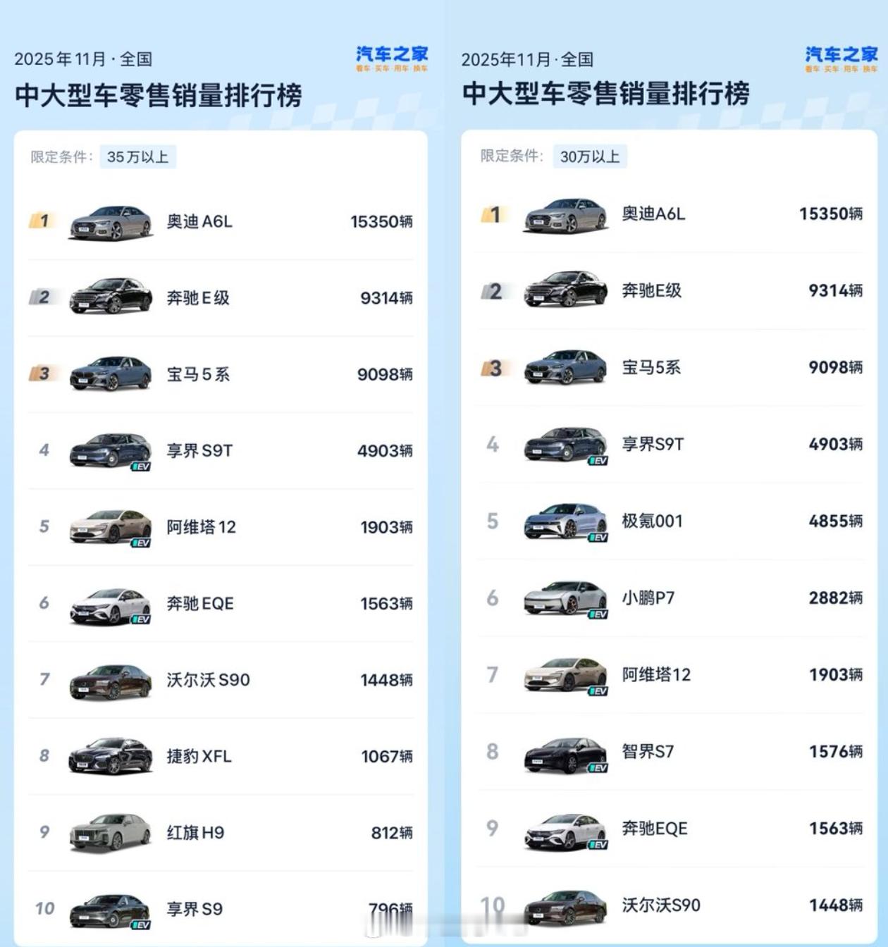 今年新能源汽车在30万以上豪华轿车市场取得了突破,过去我们认为这个市场的消费者只认BBA,今年新的变量享界已经站稳脚跟。新款享界 S9 和享界 S9T 相继上市,鸿蒙智行旗舰9系正式形成“轿旅双子星”格局。一个偏商务与日常,一个覆盖旅行与生活方式,但两台车共享同一套华为旗舰级底层科技,把豪华、智能、驾控和安全一次性拉满,在鸿蒙智行SUV的路线取得成功以后,在轿车领域也在重新定义豪华标准。从销量看,享界已经打进30万以上豪华轿车核心区,交付节奏紧跟BBA;从渠道看,超九成申请专网的经销商来自传统豪华体系;从用户看,S9和S9T的大量订单,直接来自BBA车主的增换购,中国高端用户的豪华选择逻辑和之前不一样了。享界已经把智能、安全和情绪价值做成标配,华为乾崑智驾、途灵平台、全维融合感知,这些融入产品让中国消费者能用到的体验。享界把“新智能 + 新豪华”跑通商业闭环,享界与BBA 四分天下,这个新的格局有点意思。享界让豪华轿车市场四分天下