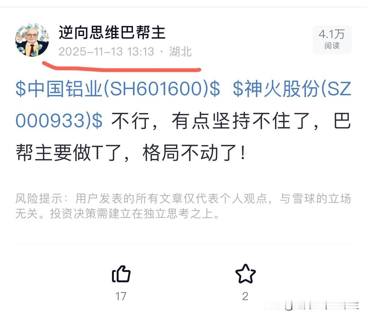 相比较黄金,对电解铝信仰不足,此前冲高的时候,卖出了一半仓位,原本是计划啥时候接回来,做一个大T,结果价格迟迟回落不到理想的位置,莫非这一部分仓位是真的要T飞了?如果未来价格回落到理想位置就接回来,如果一直不调整,我也不可能去追了!