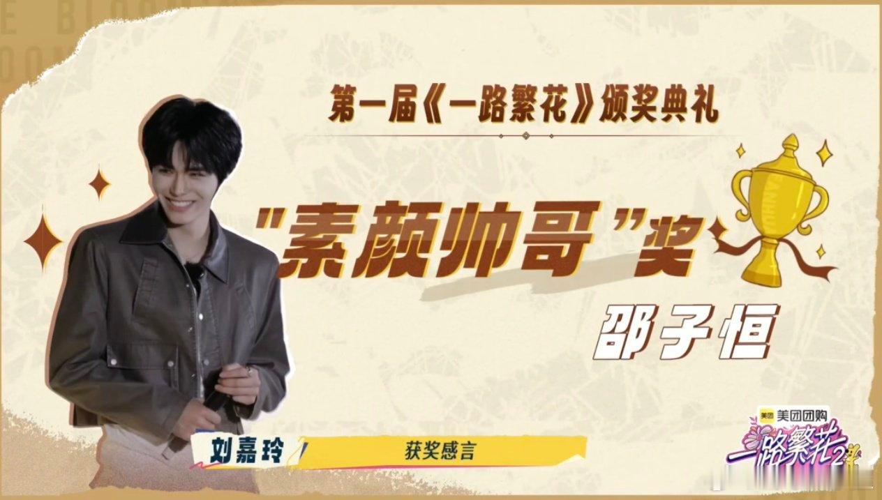 邵子恒获素颜帅哥奖这闭环太绝了!之前因为“刘嘉玲劝邵子恒别化妆”上热搜,弟弟超听劝第二天就素颜出镜,如今在《一路繁花2》颁奖环节,他直接喜提刘嘉玲亲自颁发的“素颜帅哥奖”。谁能想到一个劝妆事件,还能发展成一个完整的名场面闭环?更搞笑的是,赵柯淳听到“帅哥”两个字瞬间准备认领,得知是邵子恒后立刻补刀:“原来是你啊帅哥。”邵子恒也反应超快:“不好意思,先走一步了。”一句接一句的梗,把原本有点伤感的氛围直接盘活,现场也太欢乐了!一路繁花
