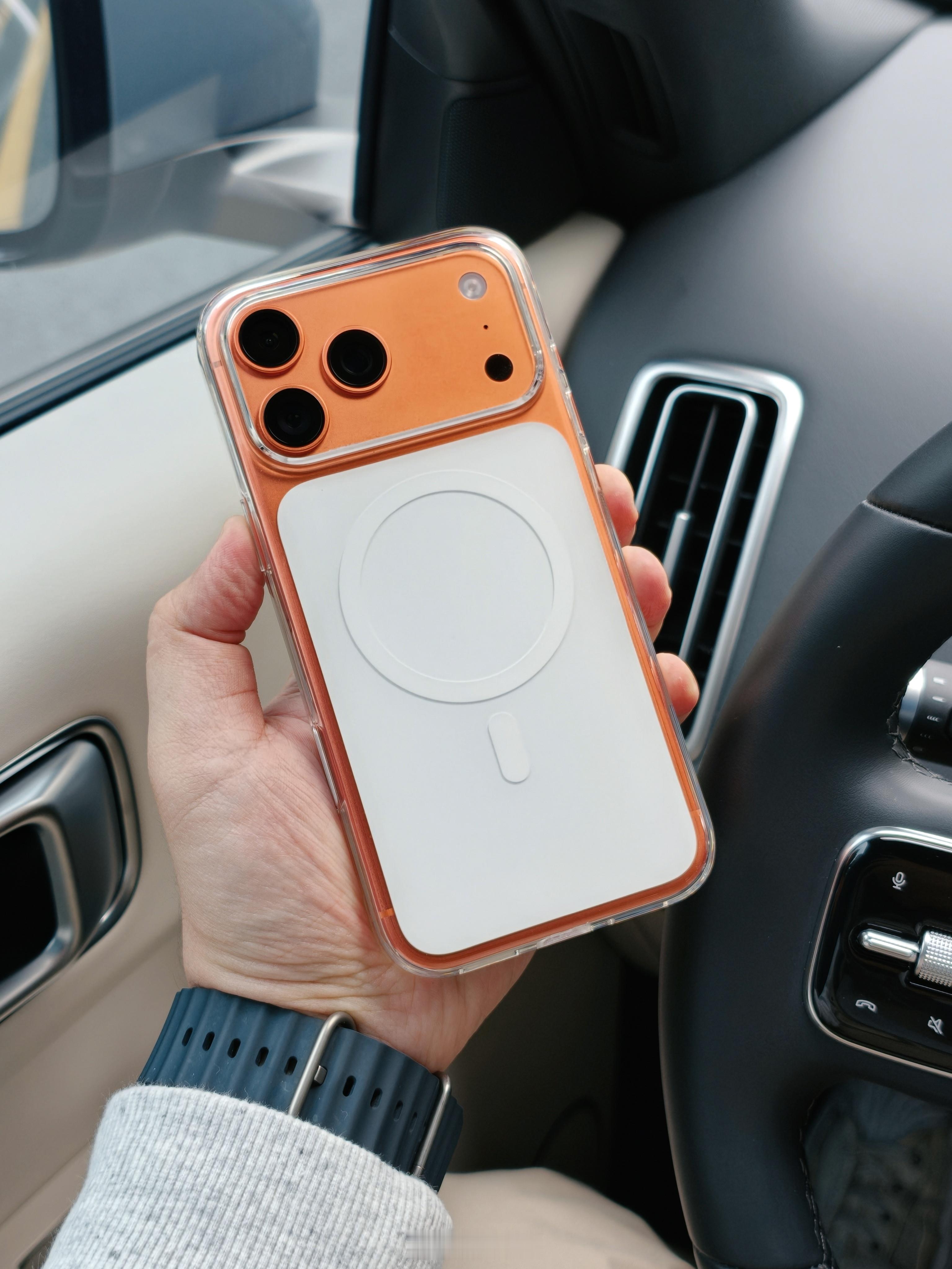 阿慕新上的透明壳真是精品。手感好,保护性强,MagSafe满圈,卡包吸得稳。关键是,透明壳配橙色的iPhone还挺好看,不突兀。喜欢,推荐。阿慕良品 MESAP 官方相似款iPhone17PROMAX PC 全包防摔定制透明高透手机壳可爱简约设计