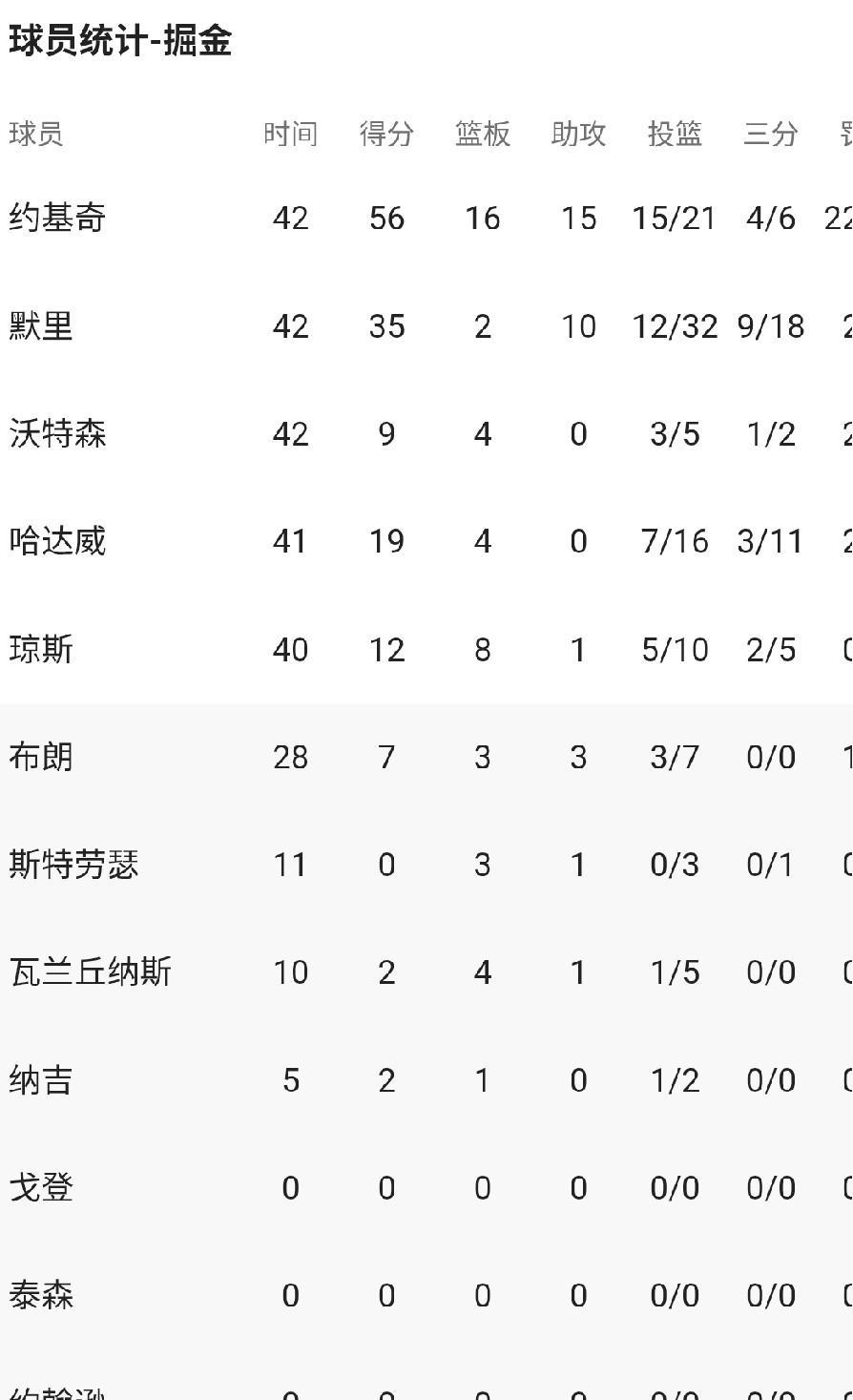加时赛打出27-23的比分,这是什么神仙操作! 在掘金加时142-138战胜森林狼的比赛里,双方在加时赛5分钟里合砍50分,是该夸双方球员的命中率高,还是该夸双方善于利用规则增加了进攻次数? 1.三届MVP约基奇拿到56分16板15助的炸裂数据 2.双方都拿到31次助攻 3.加时赛双方合计50分 4.森林狼全队2分球59投39中,命中率66.1% 4.掘金投中19个3分,命中率高达44.2%,罚球32罚29中,命中率90.6% 6.森林狼送给掘金12次火锅大帽,戈贝尔1人就6次