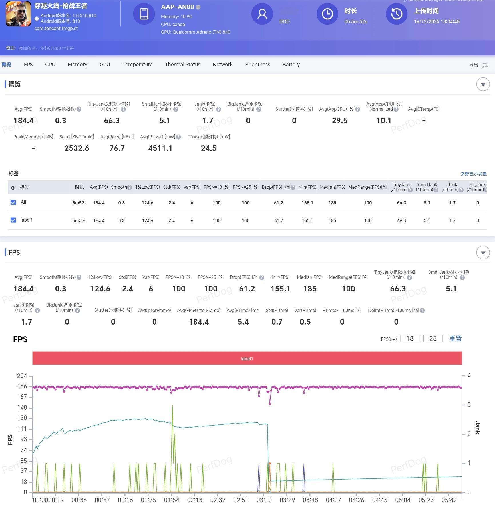 荣耀WIN真机上手,简单聊几句:10000mAh+100W+80W,目前最夯的电池方案,实测中重度使用续航能有10小时,轻度用两天无压力,厚度仅有8.3mm,堆叠有点哈人,其它家暂未跟进。6.83"1.5K+185Hz,目前主流FPS手游已经适配超高帧了,骁龙8 Elite Gen5加持,游戏全都能接近185FPS,原神超帧模式一小时平均119.9FPS,平均功耗6.8W,大型游戏的流畅度也没得挑。内置散热风扇,可自行调节开关和转速,全开风扇的声音在可接受范围,风道隐藏在Deco,不影响机身一体性。3D超声波指纹+双1216低音炮双扬声器+IP69K满级防水+50Mp 3X直立长焦,外围没有因为性能和电池而妥协,确实是目前我用下来体验最均衡的性能机。Tips:WIN RT体验也不错,平台更换为8E,少了80W无线充和直立长焦,打游戏也杠杠的荣耀WIN