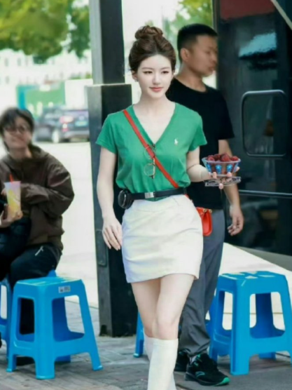 关晓彤这身材比例真的🐂,大长腿直接长到别人腰际线