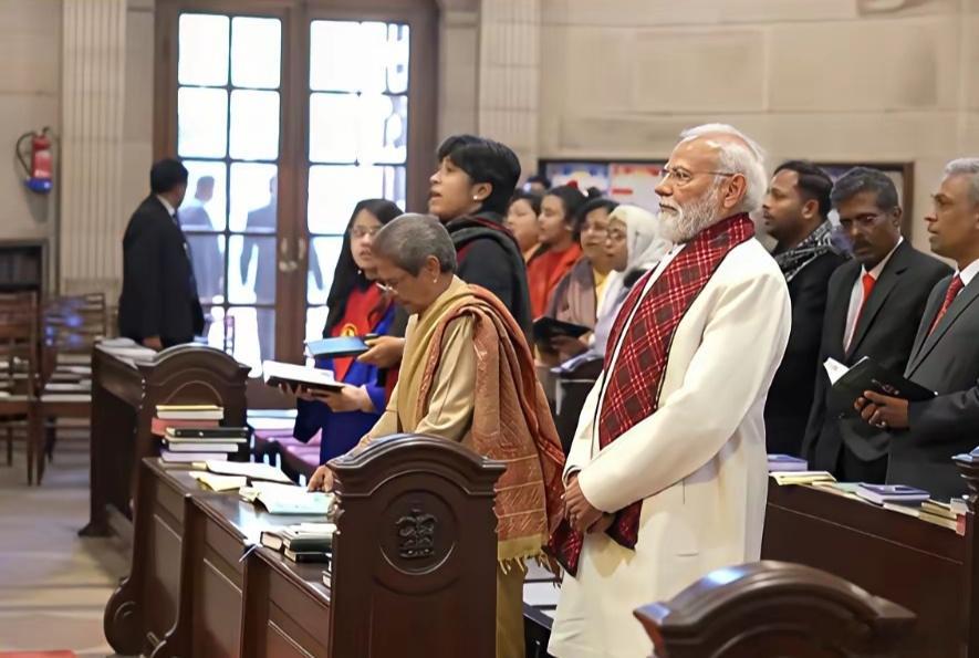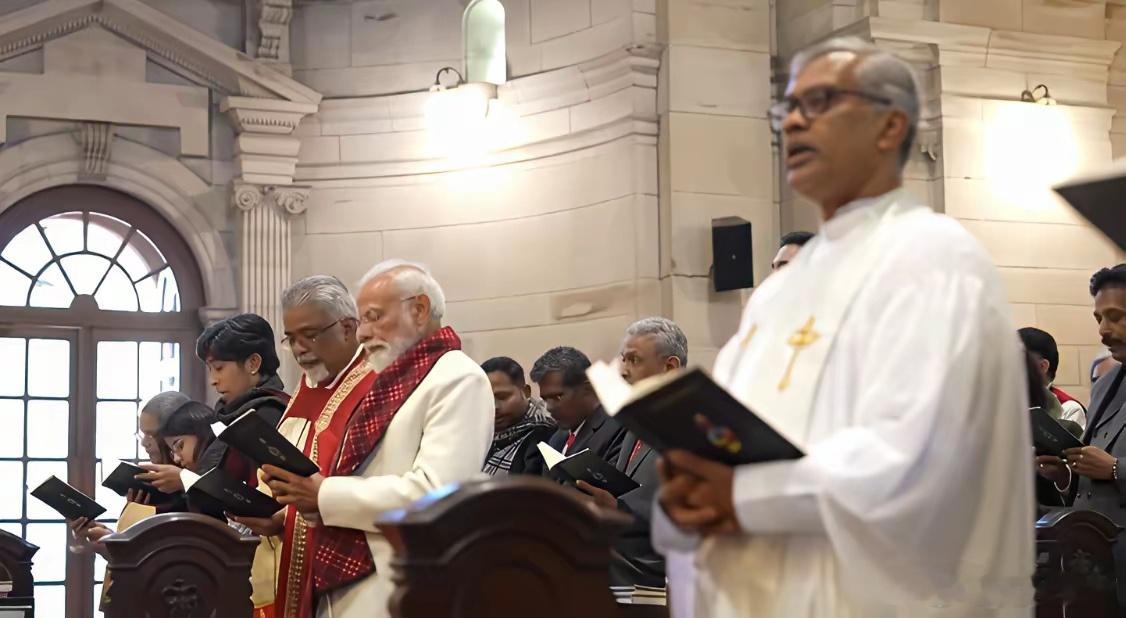 圣诞节当天,作为印度教徒的莫迪造访基督教堂,聆听圣训,诵读圣经,做礼拜。
