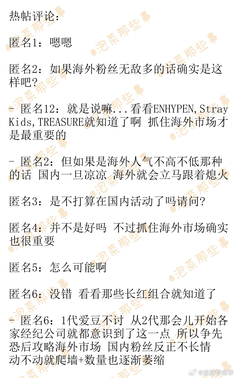 🔥韩网热帖评论翻译🔥现在KPOP爱豆们得能吸到海外粉丝才有活路啊cr.ins