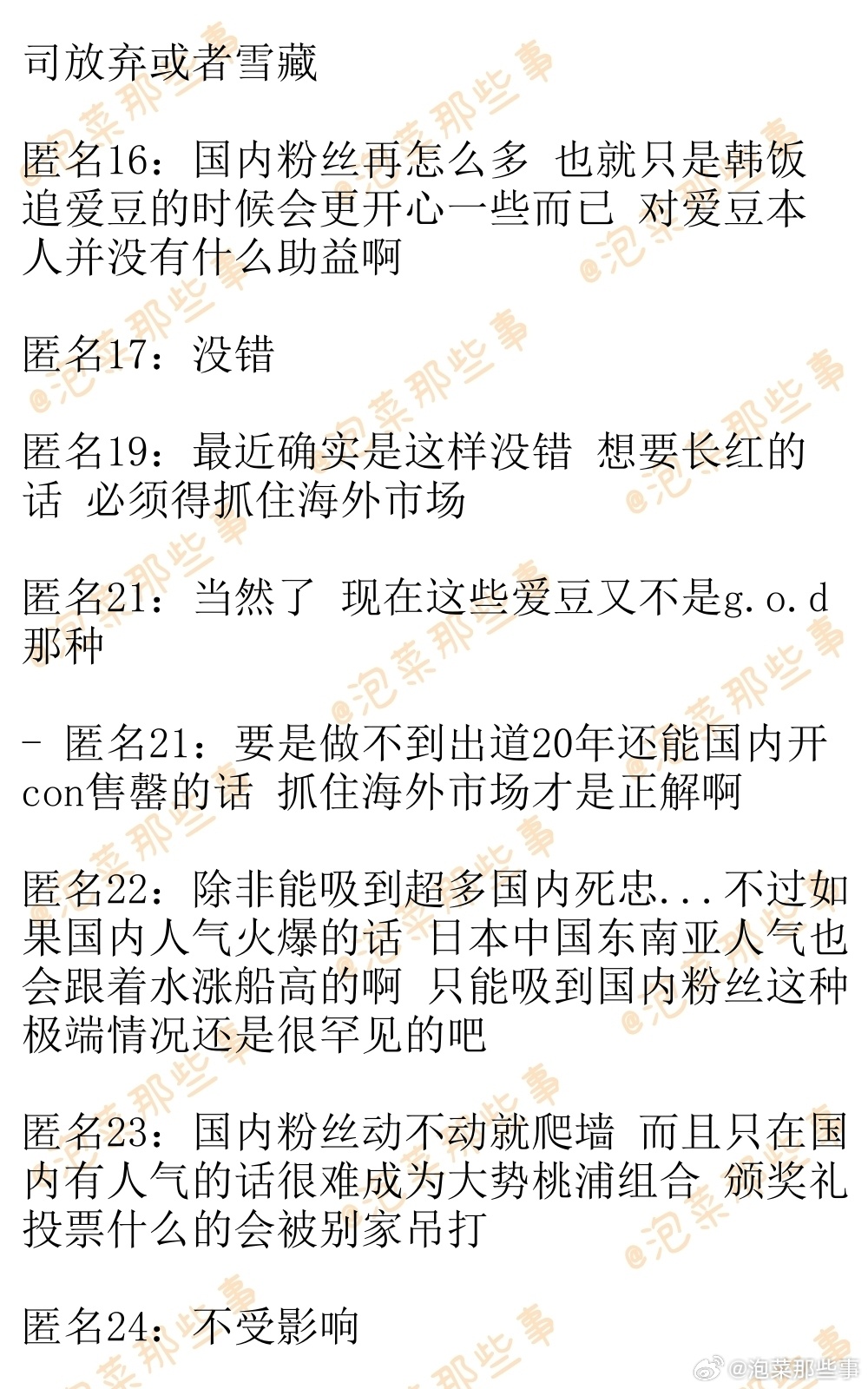 🔥韩网热帖评论翻译🔥“男爱豆的职业寿命不受国内粉丝影响”这种观点你们同意吗?