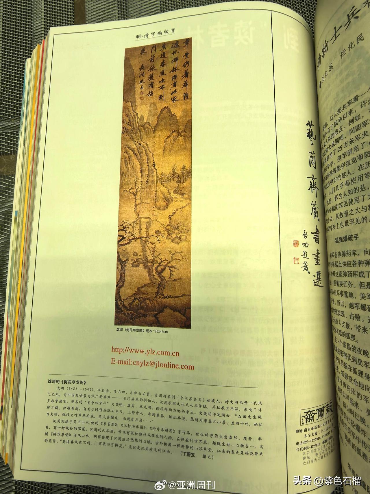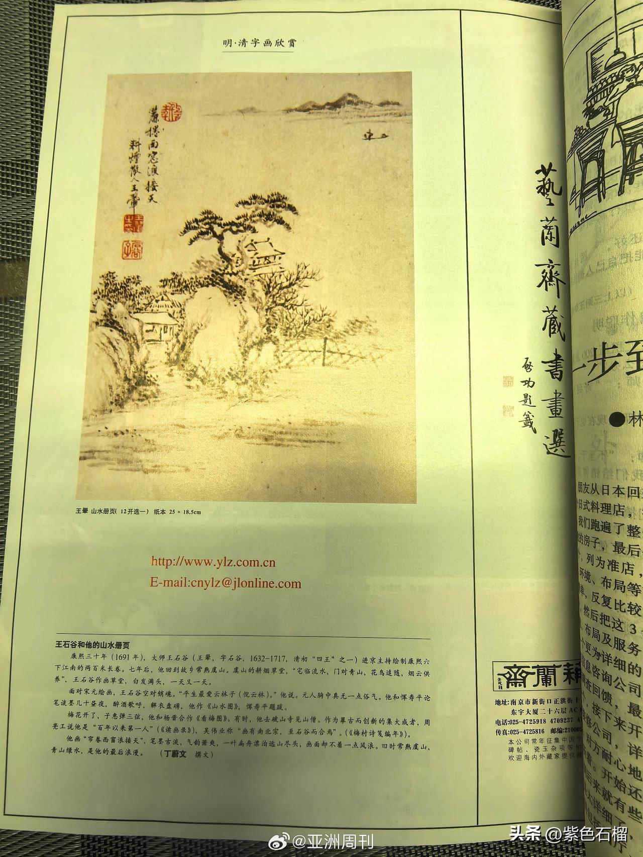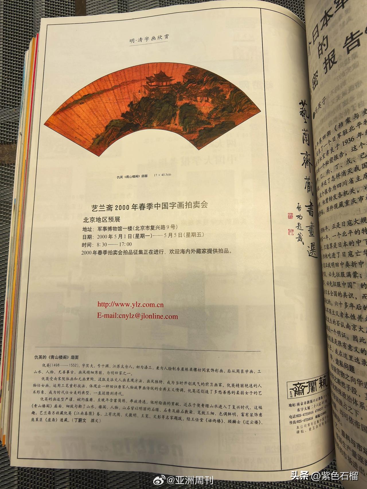 开始对南京艺兰斋展开“手撕”了,不得不说,《亚洲周刊》真是刚勇无畏,好似在替天行道。 12月26日下午,《亚洲周刊》发文爆料,南京艺兰斋早在2000年便已拥有仇英《江南春画卷》。经《亚洲周刊》核查,《读者》杂志确实在2000年第八期登载了《江南春卷图》相关信息,位置处于杂志中间的彩页部分。 而且,艺兰斋在2000年一整年都在《读者》杂志刊登相关画作,并非仅刊登了一期。 此外,《亚洲周刊》还怀疑艺兰斋所刊登的书画或许还有来自其他收藏场所的流失之作。 不得不说,《亚洲周刊》这回真要把艺兰斋仅存的体面彻底撕碎了。对此,大家作何看法? (图片来源:亚洲周刊)