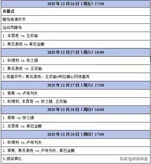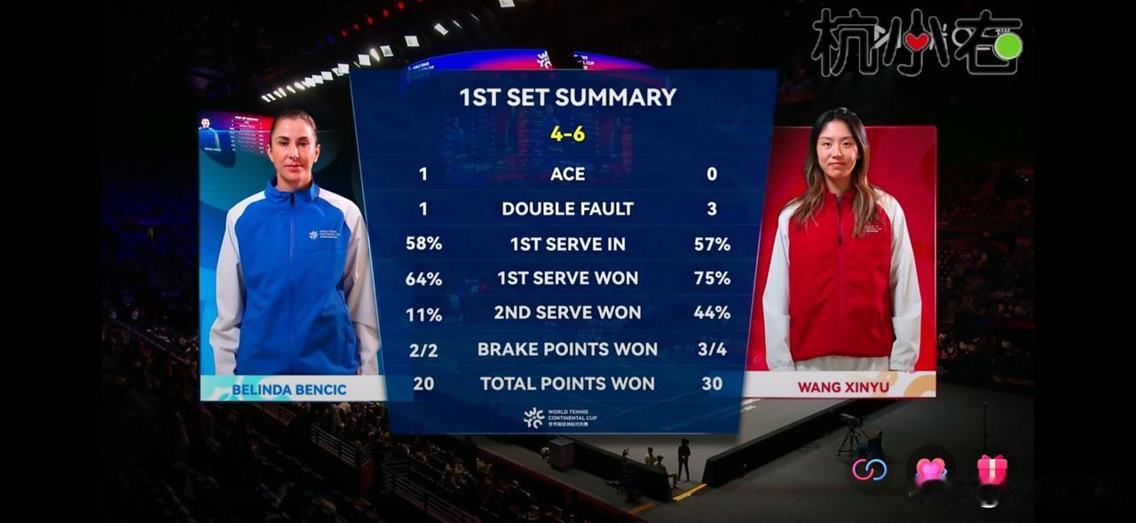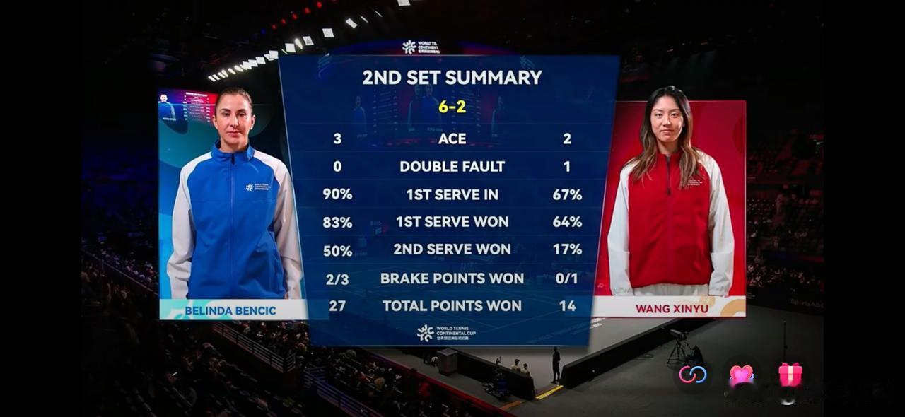 首届世界网球洲际对抗赛首日暖场赛🔥🔥 王欣瑜和本西奇这一战,战况跌宕起伏。王欣瑜先以6 - 4拿下第一局,给大家开了个好头。可没想到,第二局风云突变,她以2 - 6输掉。决胜局抢十更是遗憾,王欣瑜5-3领先、最终5 - 10不敌本西奇,不过她在赛场上的拼搏劲儿还是值得点赞。 现在大家的目光都聚焦在莱巴金娜和斯瓦泰克的比赛上。这两位可都是网坛的实力选手,不知道会擦出怎样的火花。我已经搬好小板凳,准备好好欣赏这场精彩对决啦!
