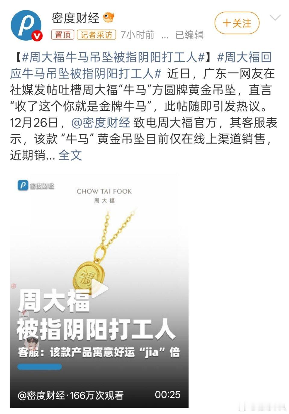 周大福牛马吊坠被指阴阳打工人都是牛马了,还怕被阴阳吗?建议每家公司的老板都给员工