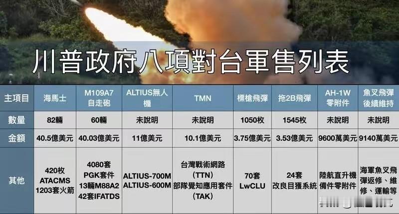 关于美国武装台湾,中方给美方画了三条红线。 这也算是对美方挑明了, 美方的这次111亿美元的对台军售,包括海马斯火箭弹,M109A7自行火炮、ATACMS陆军战术导弹、标枪反坦克导弹系统等等,有人担心美方这是要把台湾武装到牙齿。 对此,中方也是给美方画了三条红线,停止武装台湾的危险行径,停止破坏台海和平稳定,停止向“台独”分裂势力发出错误信号。 这话说的已经很重了,美方如果再一意孤行,可就真不会客气了。