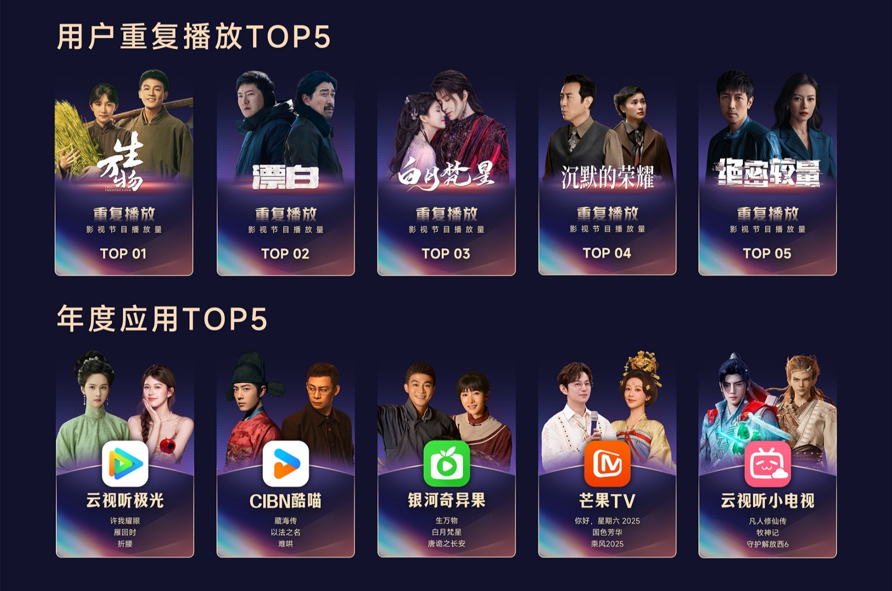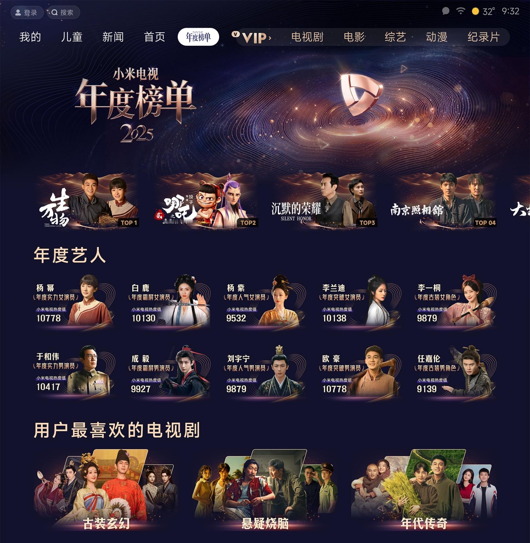 1⃣️年度热播电视剧 生万物 TOP12⃣️年度实力女演员 杨幂 TOP13⃣️用户最喜欢的电视剧 生万物 TOP34⃣️用户重复播放电视剧 生万物 TOP1小米电视年度榜单