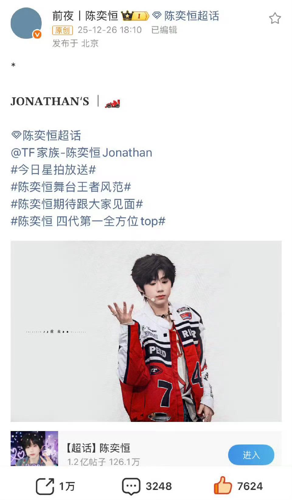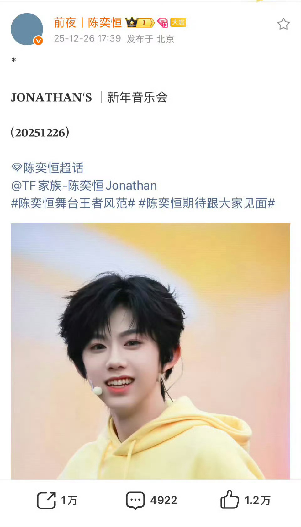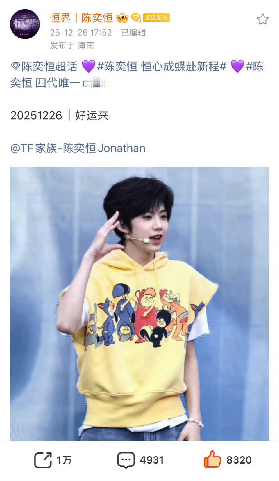 陈奕恒一小时四个万转饭拍陈奕恒期待跟大家见面