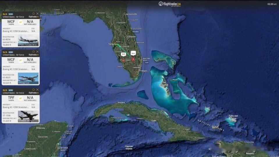 🇺🇸🇻🇪美国空军“南方之矛”行动:委内瑞拉近海活动急剧增加 12月25日晚,作为该行动的一部分,美国空军大量加油机被部署到委内瑞拉附近海域。至少有九架加油机已从美国本土基地起飞或准备起飞,目的地为加勒比海和委内瑞拉。 已部署部队 KC-46A“飞马”加油机(5架): 17-46038 — SMUG 32 17-46036 — SMUG 31 15-46009 — LAVIC 22 18-46044 — REACH 032 20-46075 — REACH 030 KC-135“同温层加油机”(已确认1架): 61-0293 — GERM 11 其他: 另有3架KC-135 2架型号不明的飞机 (包括LAVIC 21、GERM 12和40CG 7S) 详情 至少有四架飞机(SMUG 31/32、LAVIC 22和GERM 11)正在执行同一项空中加油任务; 并非所有飞机都已确认升空,但其活动水平表明,美军正在为委内瑞拉附近的持续行动提供大规模支援。 如此多的加油机表明,美军正在为长期、高耗能的空中行动(侦察、巡逻以及可能为打击平台提供支援)做准备或提供支持。部署区域和活动频率表明,美军在南部战略方向的行动已进入强化阶段。